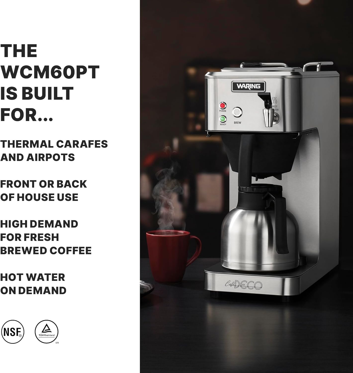 This high-performance commercial kitchen essential is a must for satisfying high demand for fresh-brewed coffee. Designed for easy operation with a plumbing connection, it offers a built-in pour-over feature and an easy-draw faucet that provides hot water on demand for soups and hot beverages. Designed for speed and efficiency, this unit brews coffee to perfection in minutes. Ideal for keeping coffee hot and ready to serve in thermal carafes, it includes an automatic refill feature for complete ease and convenience.