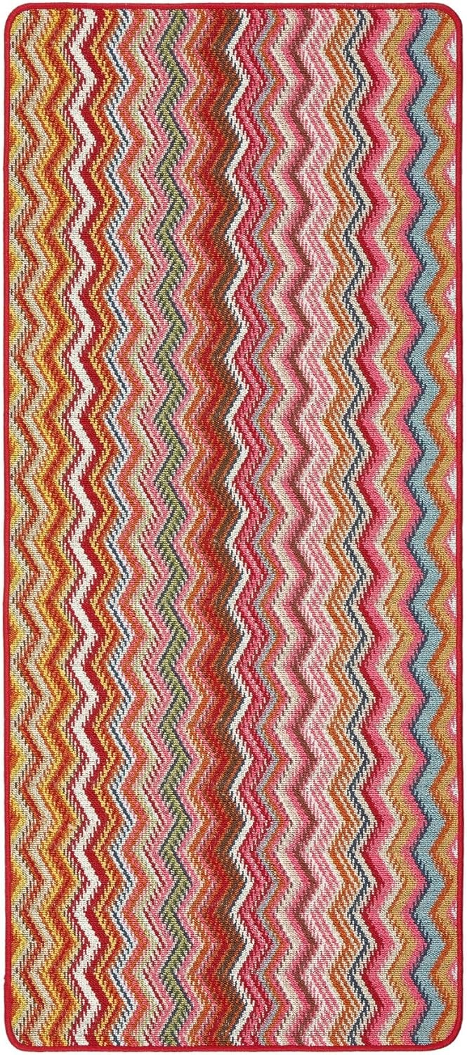 Add a touch of practicality and vibrant color to any doorway with our new patterned collection. The Candy Multi Bright design features bold plain striped and zigzag stripes in warm tones of reds, pinks, oranges, natural and yellows, accented by a taped edge. Proudly 100% designed and made in the UK, these mats are stain-resistant, durable, and machine washable for effortless cleaning. Perfect for kitchens, hallways, utility rooms, and more.