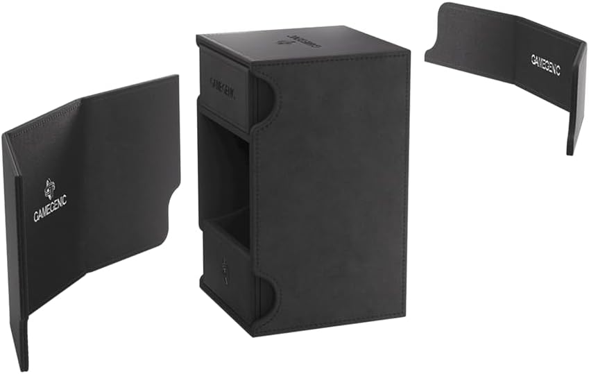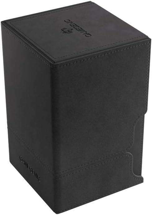 “Your hoard is on my watch.” – Many customers have been waiting for it: our highly-rated XL boxes in new colors – BLACK and ORANGE! The Watchtower 100+ in an extra-large version. TOP FEATURE: Made to fit 100 double sleeved cards in extra Thick Inner Sleeves.* Elegant outside material with soft microfiber inner lining. The convertible Watchtower combines deck box, accessory drawer and card holder in one elegant box. The accessory drawer is perfect to house dice, tokens and other small items. INNOVATION: the Watchtower’s card holder can be flipped and works perfectly as a card stack holder. This keeps your deck in shape at the table and makes drawing cards even better.