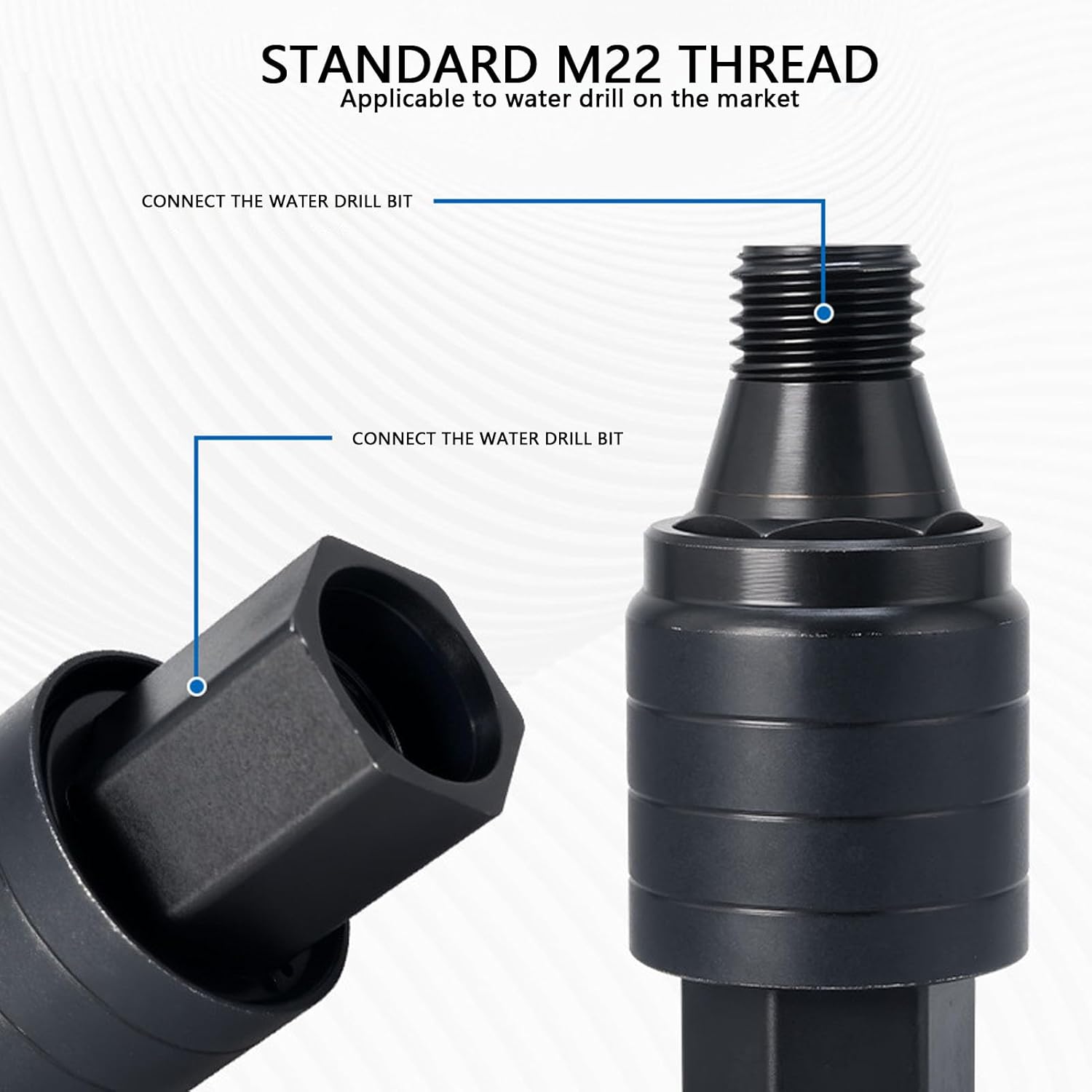[Versatile Design] Compatible with most water drill bits with its m22 threaded interface, offering a variety of drilling options. [Stable Drilling] Features a 6 ball locking mechanism for a secure fit and reduced wobbling during use. [Convenient Usage] Male end connects to the drill directly, enabling quick swaps between multiple drill bits for streamlined drilling. [Efficient Workflow] Storage Box/Cover mechanism allows for easy bit changes, reducing downtime and improving efficiency. [Long Lasting Strength] Made from 45 steel, this water drill connector ensures durability in tough conditions. Spec: Item Type: Water Drill Quick Connector Product Material: 45 Steel Package List: 1 x Water Drill Quick Connector 1 x Storage Box