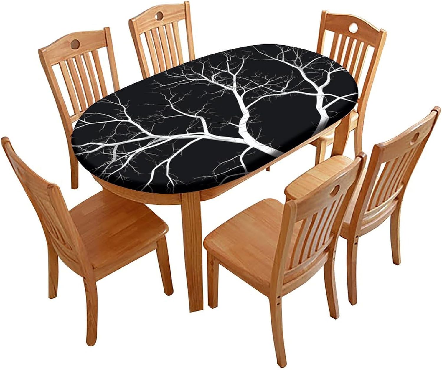 Product Title: Premium Waterproof Polyester Oval Table Cover - Multi-Purpose, Low Maintenance, Customizable Design and SizingProduct Description:Perfect Fit and Customization: This package comes with a Polyester table cover, meticulously designed for oval tables. Available sizes include 42x60 inch, 48x68 inch, 52x70 inch. the elastic edge design ensures an easy and snug fitting to any oval table within the specified size range. Our customization services also extend to the images and sizes. For any personalized needs, feel free to contact us.High-Quality Material: Our table cover boasts 100% high-quality polyester which guarantees excellent durability and resistance against damage. the material is waterproof ensuring effective protection from spills and accidents.Aesthetically Pleasing Design: Drawing inspiration from nature and cozy, our polyester tablecloth exhibits sophisticated hemmed edges and a seamless construction. Beyond serving as a mere tablecloth, it significantly contributes to the aesthetics of your home decor.Multi-Use Tablecloth: Our tablecloths deploy versatility at its best, fitting into settings in dining rooms, living rooms, kitchens, patios and garden tables. Be it daily dining or special occasions such as family gatherings, birthday parties, or fall parties, our tablecloth amplifies the allure of your surroundings.Easy Maintenance: Engineered to be spill-proof, dust-proof and wrinkle-free, our tablecloth ensures minimal maintenance. It can be machine washed in cold water and tumble dried. However, for optimum results, we recommend hand washing and air drying. Made from a premium fabric, it requires little to no ironing.Note: Our objective is to ensure you are 100% satisfied with your purchase. In case of any concerns or questions about the product, feel free to reach out to us. We are committed to providing all necessary assistance.