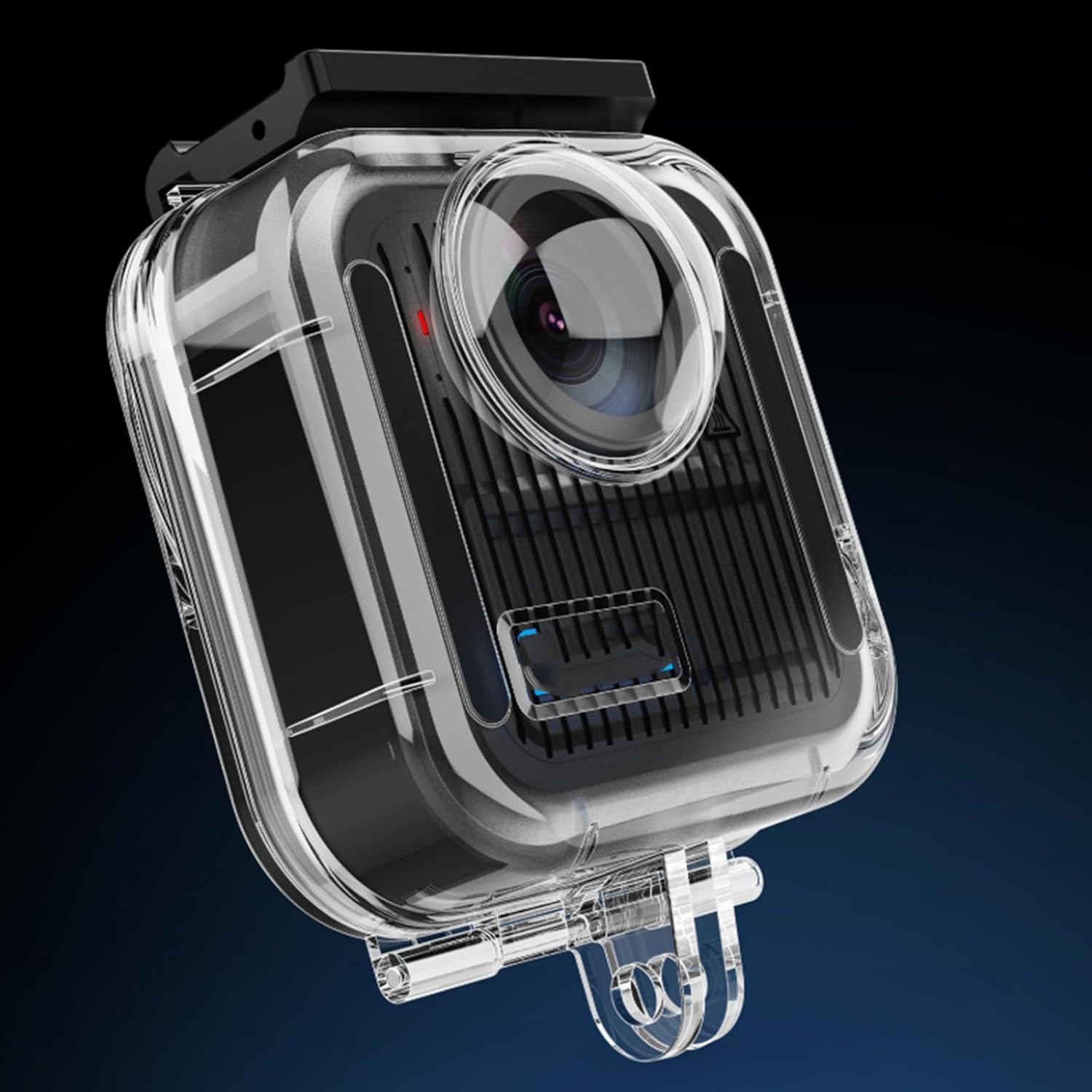 Specifications:Material: Transparent PC + Tempered Glass + Stainless SteelColor: TransparentWater Resistance: 60 metersSize: 10.8x 8.2x 5.7cmWeight: 110gQuantity: 1 SetApplicable Model: Compatible with Go-Pro Max2Package:1x Waterproof Case + 1x Base + 1x ScrewNote:Only the above package content, does not include other accessories.