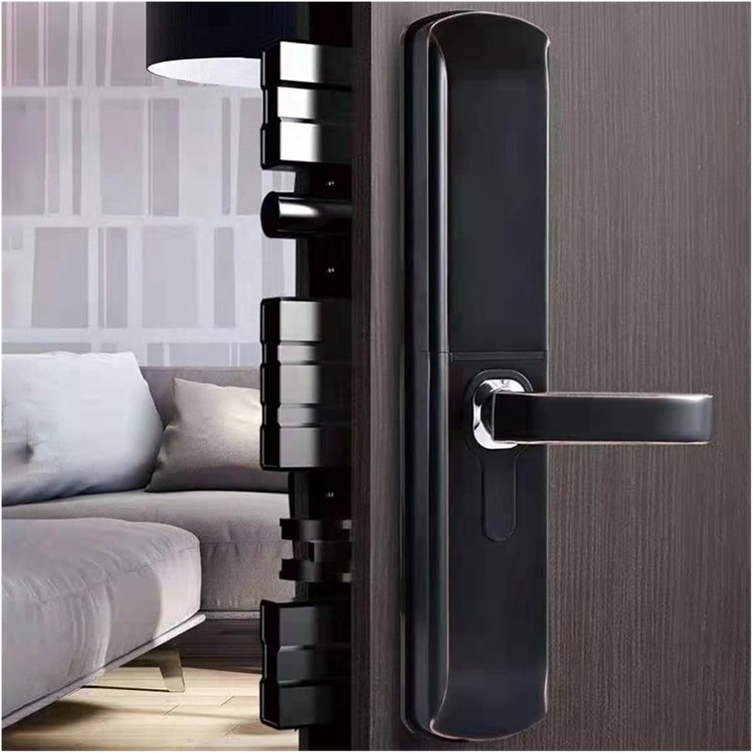 Specifications:Color: reddish brown, blackFingerprint capacity: 100Main capacity: 2 piecesPassword capacity: 100Unlock time: 1.5sStandby current: 30 uAAlarm current: 300mAUnlock method: fingerprint, password, key, MF card,Door thickness: 40-120mmAttention: The support opens on the right or left side.Packaging includes:1X smart lock1X 8086 lock cylinder (24x240mm or 30x240mm or other sizes)2X key2X MF cardSome screwsWelcome to our store. We operate with integrity. We sell electronic Smart lock accessories. Please rest assured to purchase, we will provide you with the most comfortable shopping experience! Wishing you a pleasant shopping experience!