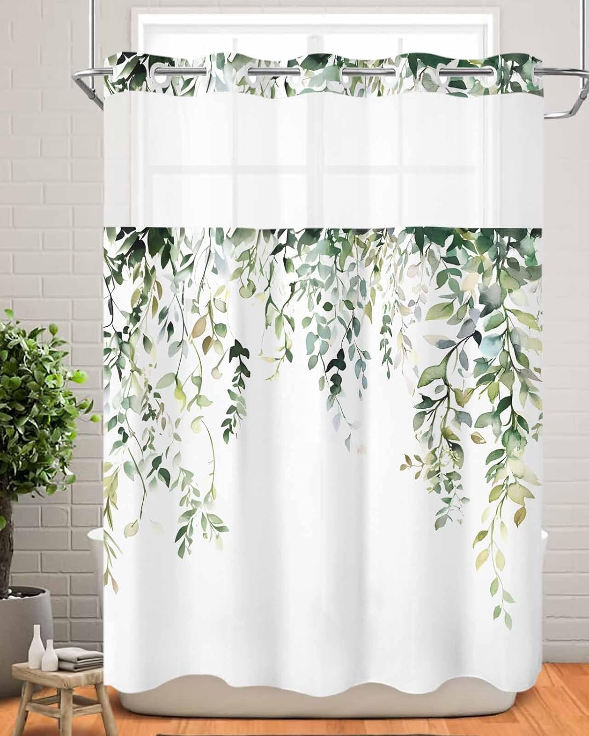 Top Transparent Window Shower Curtain -- Create A Spa Shower ExperienceDouble Shower Curtain InformationMaterial: High quality polyester fabric, soft to the touch, long-lasting.Features: The surface has a waterproof function, promoting the formation of water droplets that quickly roll off the surface, and can dry quickly to keep your floor clean.Design: With an "open ring" design, it's easy to install without a hook, allowing you to hang and slide smoothly.Size:36x72 inches (about 91x183cm)36x78 inches (about 91x183cm)48x72 inches (about 127x183cm)60x72 inches (about 157x183cm)66x72 inches (about 168x183cm)72x72 inches (about 183x183cm)72x84 inches (about 183x244cm)72x96 inches (183x244cm)Top Sheer WindowThe top of our shower curtain has a translucent mesh design that lets in natural light and keeps air flowing. Double shower curtains can also maintain privacy and create a soft and comfortable shower experience.Snap-in LinerA stylish snap-in Liner shower curtain with a high-quality waterproof surface that can be easily removed for easy replacement and saves you time. It can be paired with personalized styles and patterns to add a sense of fashion.Luxury Hotel Style ExperienceOur double shower curtains have the elegant and stylish feel of a luxury hotel and are perfect for family, friends or holiday gifts.Such as on the Fourth of July Independence Day, Christmas, Valentine's Day, birthday parties, holiday party, family banquets and other occasions, become elegant embellishment.Waterproof Shower CurtainWe adhere to the concept of creating high-quality shower curtains, so that you have a better shower experience, if you have any questions, please feel free to contact us, we will give you a satisfactory answer within 24 hours.