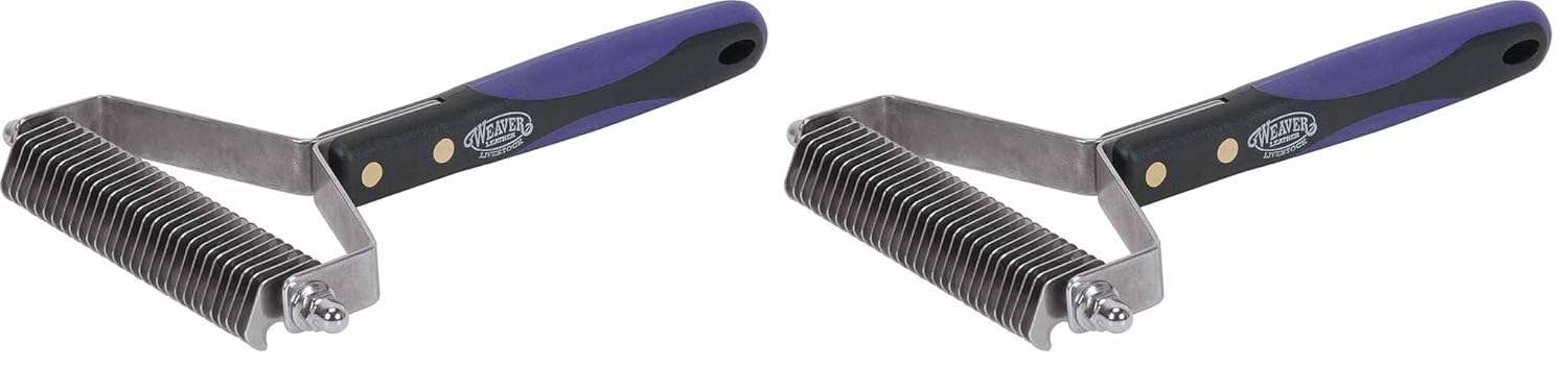 Great for pulling dead hair follicles from the undercoat for a smooth overall coat, this comb features a 4" head with 29 evenly-spaced stainless steel teeth ideal for both thick and thin hair. The rounded tips of the teeth are not sharp and will not get caught or pull out the good, healthy hair. Stainless steel teeth. Durable steel "Y" frame won't bend or break. No-slip grip for safe handling.