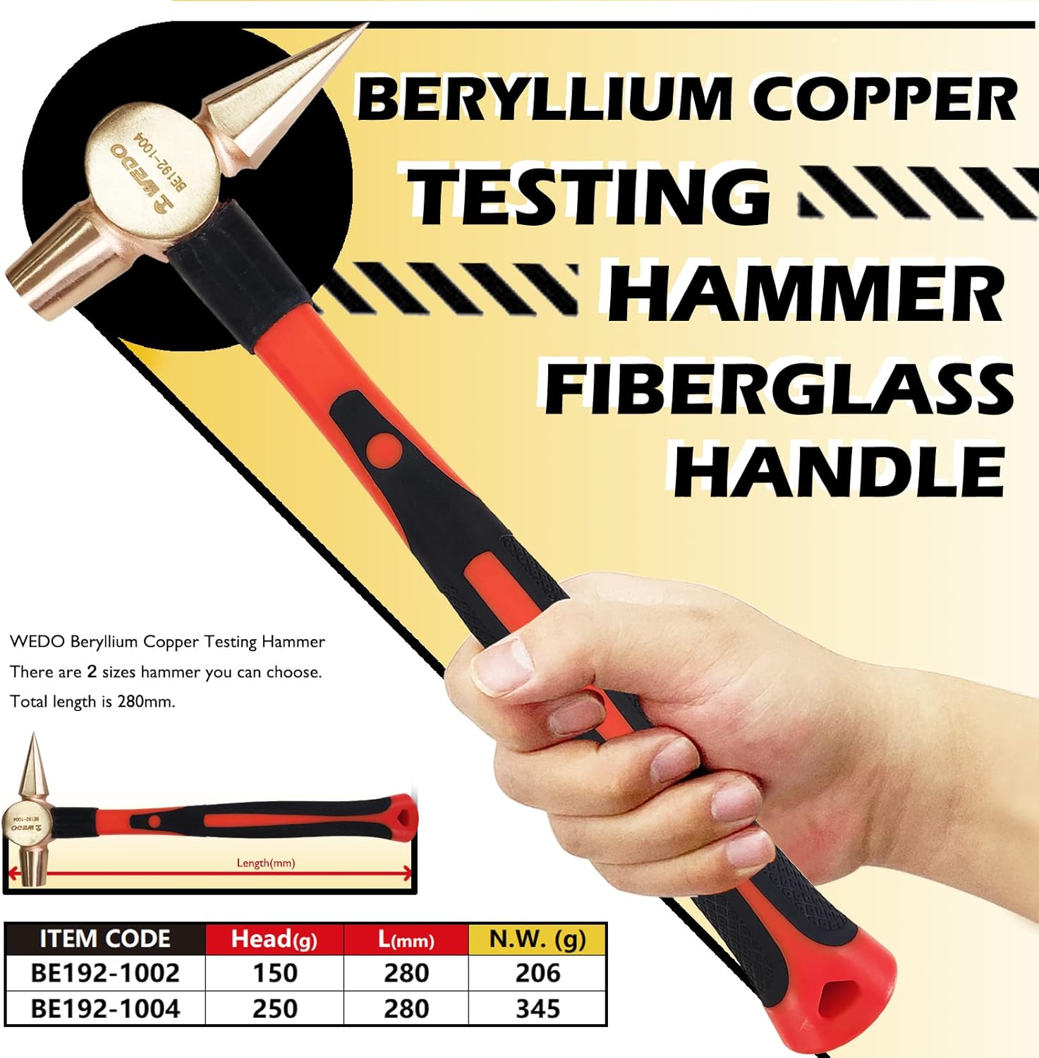 WEDO Professional Non-Sparking Testing Hammer: Certified Safety for Critical EnvironmentsWhen safety is non-negotiable, professionals turn to tools engineered for absolute reliability. The WEDO Non-Sparking Testing Hammer is purpose-built for environments where a single spark can have serious consequences. This is not just a hammer; it is an essential piece of safety equipment for inspectors, engineers, and maintenance teams working in petrochemical plants, on railway networks, inside mining operations, or anywhere flammable gases, vapours, or combustible dusts may be present.At its core is a head forged from beryllium copper, a specialised non-ferrous alloy known for its exceptional spark-free properties. Manufactured using a one-time die-forged process, it meets stringent DIN standard requirements, resulting in a tool with high hardness and dependable strength for repeated testing and tapping use. Most importantly, its safety claims are independently verified, holding both BAM and FM certificates—the recognised benchmarks for anti-static, non-magnetic, and spark-free tools in hazardous areas.Control and safety extend to the handle. The fiberglass handle is designed for a secure, anti-slip grip in all conditions, enhancing user control during precise inspection work. Its completely non-magnetic characteristic ensures it will not interfere with sensitive gauges or electronic equipment.Choose the WEDO Non-Sparking Testing Hammer for a tool where certified safety, robust construction, and professional-grade performance converge. It represents the WEDO TOOLS commitment to providing specialists with the reliably safe instruments they need to protect both personnel and assets.