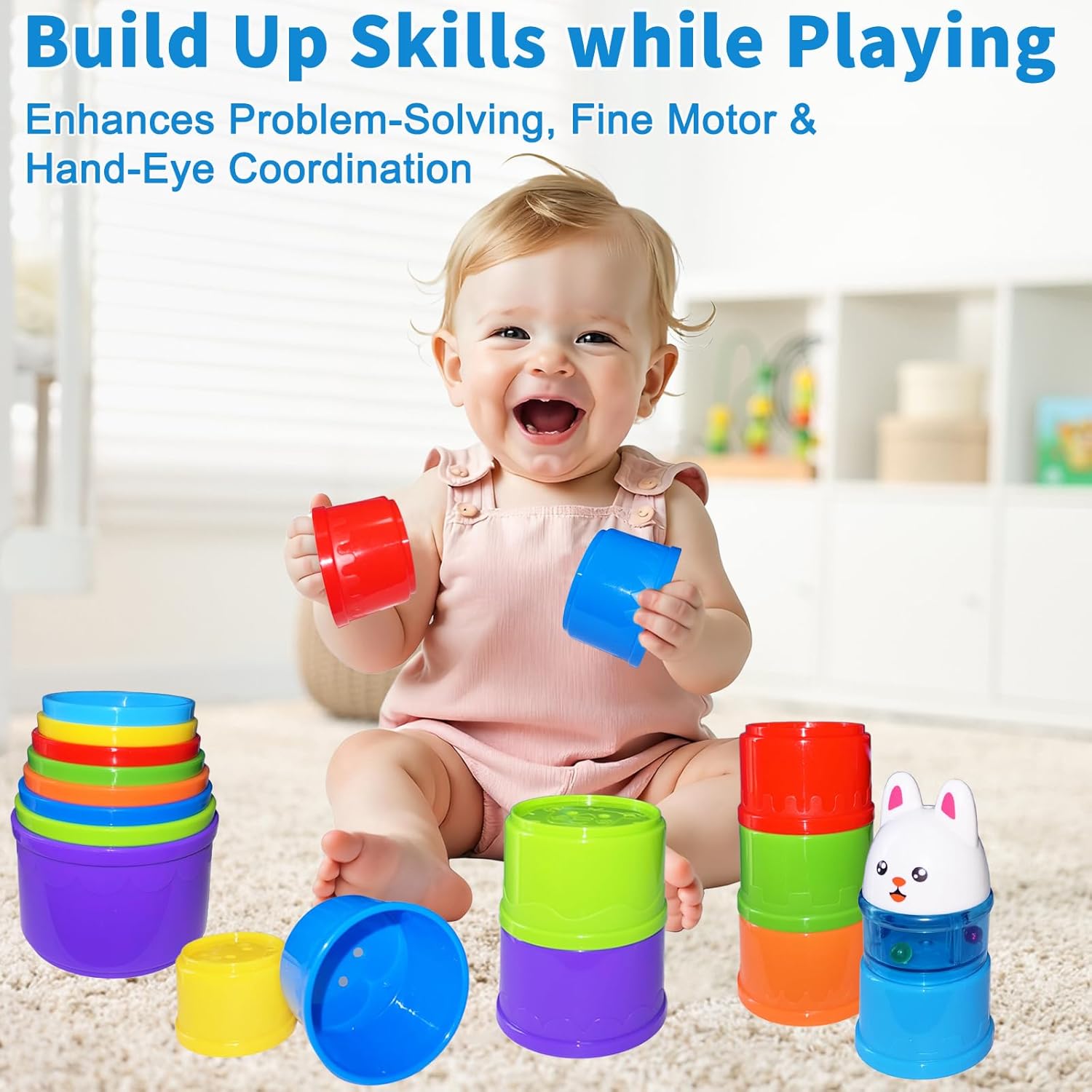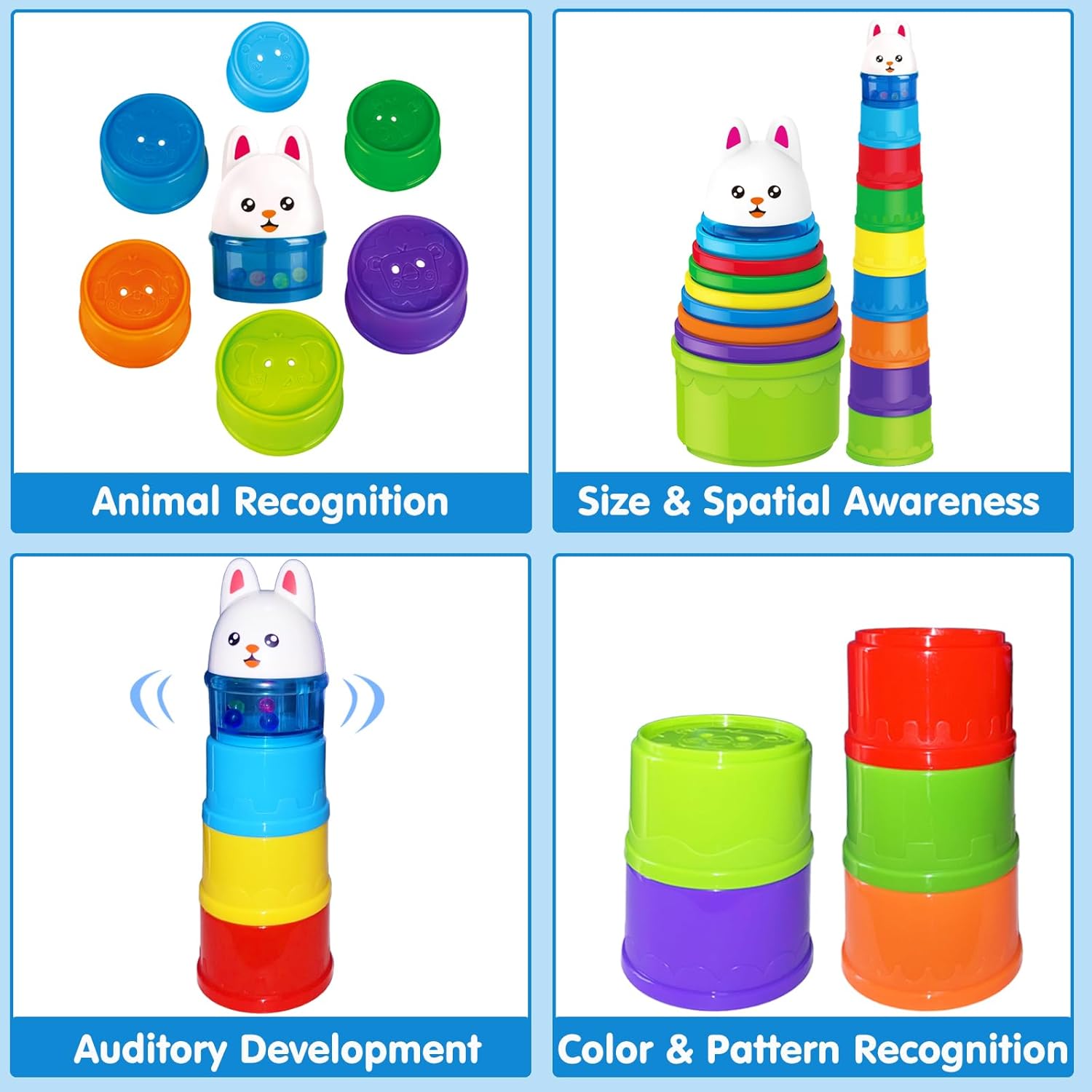 | Included Components | 8 Stacking Cups + 1 Bunny Rattle Topper |