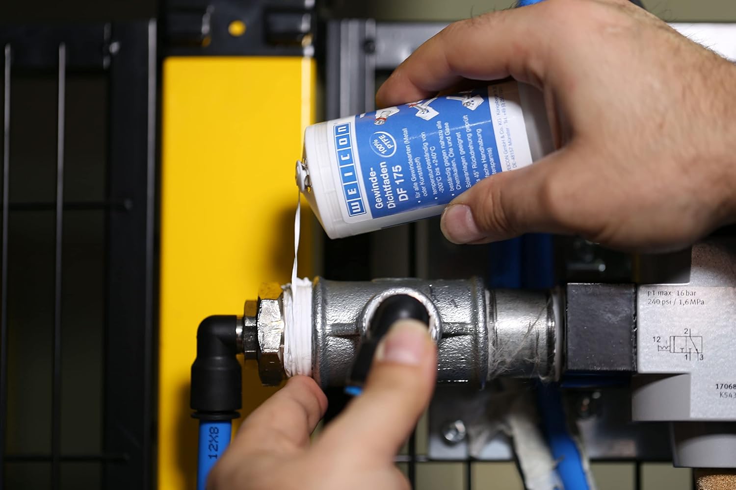 WEICON Thread sealing thread 175 m DF 175, with lubricant WEICON DF 175 is a patented thread sealing thread made from 100% PTFE and seals almost all metal and plastic threads permanently and safely. WEICON DF 175 reliably balances the gap on the threads and forms a PTFE film in the required thickness when screwed. WEICON DF 175 is unlimited durable and always remains soft and pliable.