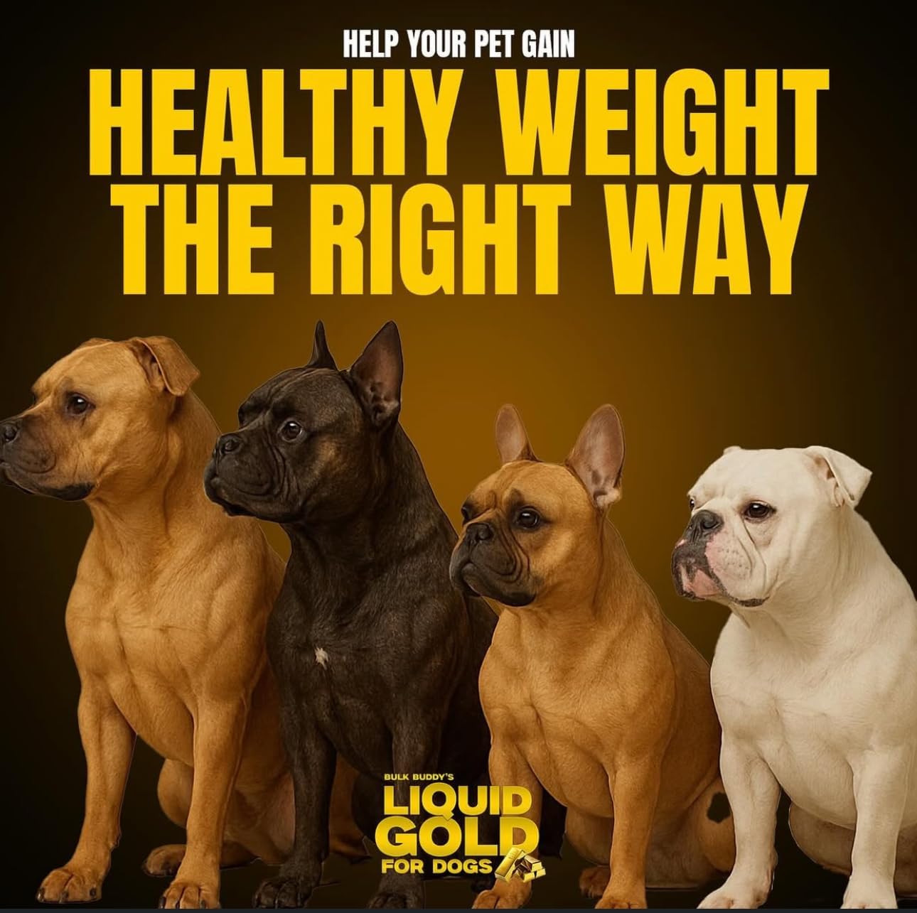 Bulk Buddys Liquid Gold is a high-calorie liquid nutritional supplement designed to support daily feeding routines. The easy-to-use liquid formula mixes conveniently with meals and helps provide additional calories for dogs with increased nutritional needs. Crafted with quality ingredients, Liquid Gold is formulated to complement a balanced diet and support overall vitality. Available in 32 oz and 1 Gallon sizes.