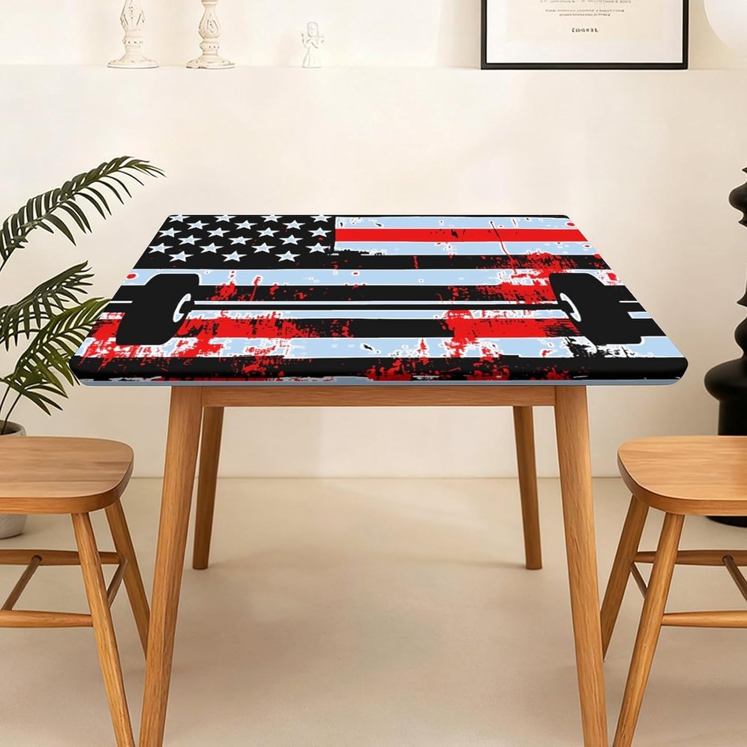 Weight Lifting U.S Flag Square Tablecloth Print Table Cloths Table Cover Wedding Party Holiday Decor