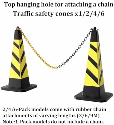 Introducing our Parking Lot Plastic Safety Bollard, designed for maximum visibility and resilience in a variety of settings. Featuring a 360-degree reflective collar, these cones ensure high visibility even at night, making them ideal for hazard warnings, traffic control, and sports training scenarios. Constructed from high-toughness EVA rubber, our safety cones are built to withstand the rigors of outdoor use. Their robust material allows them to recover from significant deformation, ensuring long-lasting performance. Standing at a practical height of 27.5 inches, these cones are easily stackable and transportable, making them convenient for both temporary and permanent installations. The wide, stable base prevents tipping, while the top ring allows for easy attachment of a chain, enhancing their functionality in various applications. Available in striking colors like Red and White or Black and Yellow, these cones not only provide safety but also add visibility to your environment. Choose from multiple pack sizes—1, 2, 4, or 6 packs—to suit your needs. Please note that the 1-pack option does not include a chain, while the 2, 4, and 6 packs come with rubber chain accessories of varying lengths (3, 6, or 9 meters) for added convenience. Whether you need to outline a construction zone, manage traffic flow, or set up a sports training area, our Parking Lot Plastic Safety Bollard is the reliable choice for your safety and visibility needs. Upgrade your safety equipment today and experience the difference in quality and durability.
