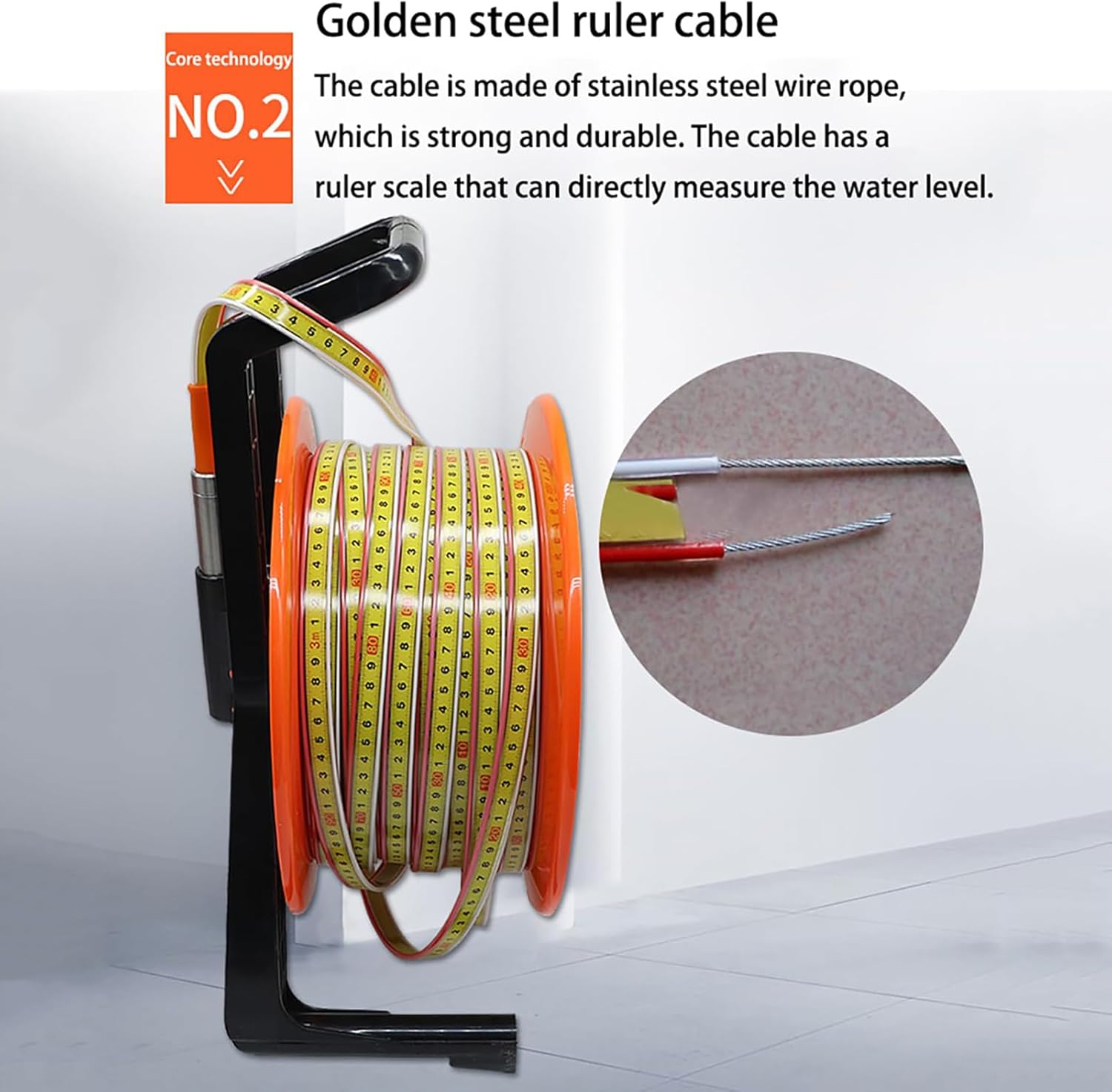 Water Level Meter for Depth Gauge, Steel Ruler Economical Water Level Gauge, Groundwater Level Measuring Instrument FEATURES: - Stainless steel probe, high sensitivity - Steel ruler cable, clear reading - Voltage display, easy to use PARAMETERS: Product name: Water Level Meter Specification: 10m/20m/30m/50m/100m/150m/200m/300m (32.8ft/65.6ft/98.4ft/164ft/328ft/492ft/656ft/984ft) Minimum reading: 1mm Repeatability error: ±0.2mm Applicable temperature of the instrument: -20℃~+60℃ Battery: 9V It is usually used to measure the water level in wells, boreholes and water level pipes, and is particularly suitable for observing groundwater levels in hydropower projects.