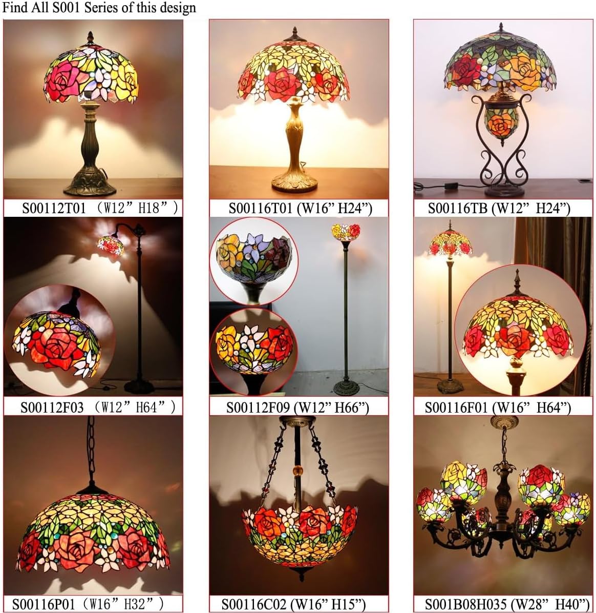 | Subject Character | Tiffany Style Red Rose Table Lamp |