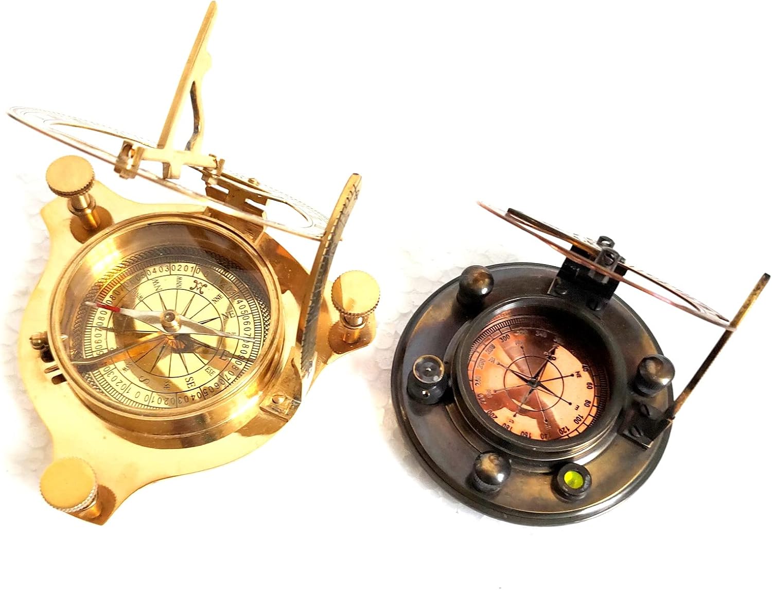 Step back in time with this exquisite West London sundial compass set from Gilbert & Sons, featuring both gold and copper finish pieces that embody classic nautical navigation style. These precision instruments combine form and function, with the gold-finished compass featuring intricate Roman numeral markings, detailed degree measurements, and adjustable sighting arms. The copper-toned companion piece offers a striking contrast with its darker patina and complementary design elements. Each compass is crafted with meticulous attention to detail, from the carefully engraved measurement scales to the smooth-turning adjustment knobs. Perfect as both a functional navigation tool and a sophisticated decorative piece, these compasses make stunning additions to any maritime collection, office desk, or library shelf. The set's vintage-inspired design captures the romance of traditional seafaring while maintaining practical functionality. The robust construction ensures these pieces will stand the test of time, just as their historical counterparts have done for centuries. These versatile instruments serve as both practical tools and conversation-starting display pieces that bring a touch of nautical heritage to any setting.