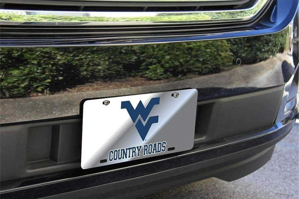 West Virginia Mountaineers License Plate and Frame Bundle Elite Fan Shop West Virginia Mountaineers License Plate Silver Mirrored acrylic with vinyl decal graphics 11 5/8” wide x 5 5/8” tall 1/8” thick Officially Licensed Elite Fan Shop West Virginia Mountaineers License Plate Frame Silver Made of zinc alloy metal Standard size of 6.25” tall x 12.25” wide & 3/16” thickness These frames leave all four corner areas of the license plate visible Officially Licensed