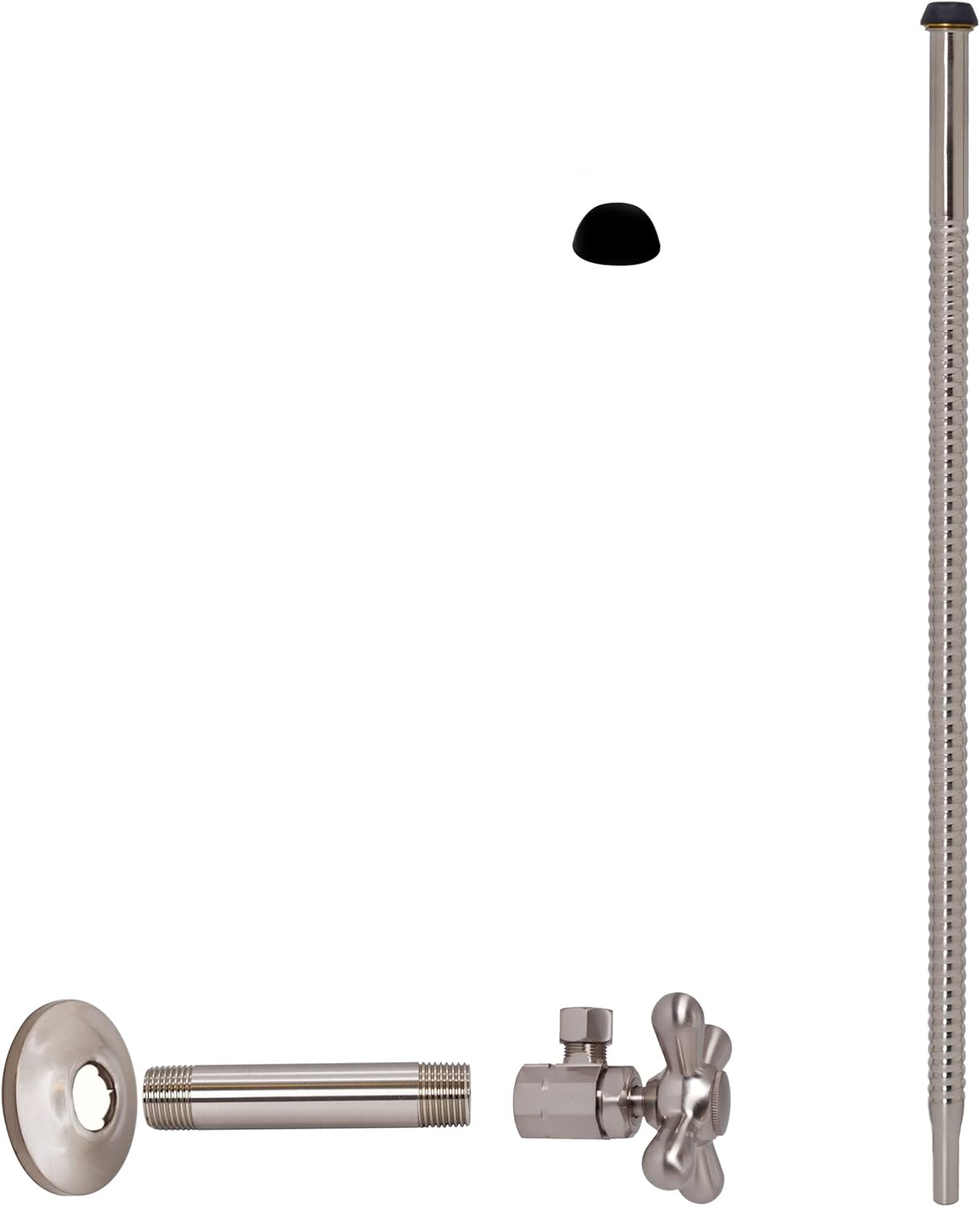 Product Description This Westbrass Angle Stop Kit with Cross Handle is the perfect compliment for sinks and toilets. It uses a 1/2 in. IPS threaded Inlet with a 3/8 in. OD Compression outlet with nut and ferrule. The kit features a 15 in. corrugated riser with seals for sink or water closet. The valve uses traditional compression closure for positive seal. Available in a variety of stylish finishes, this item is sure to complement your existing fixtures. Be sure to check out our other model styles and VISIT OUR WESTBRASS BRAND STORE for more Kitchen and Bath items to stylize your home with convenient functionality and beauty. From the Manufacturer Westbrass was founded in 1935 by two brothers, Jack and Aaron Kagan, to serve the needs of all plumbing wholesalers on the West Coast. The product lines at the time included items such as faucets, valves, malleable fittings, etc. After becoming the premier distributor of plumbing products, the company was bought in 1985 by Max Homami. Seeing a boom in the Home Improvement Industry, Mr. Homami had a vision to make Westbrass the leader in Kitchen & Bath Accessories. The company currently manufactures its own products made of the highest quality materials. In order to ensure the excellence in the industry, these products are made to pass the highly stringent requirements of NSF, IAPMO, ADA and many other regulations. The Los Angeles-based company now sells a wide range of Plumbing Specialty Products, Bath Waste & Overflows, as well as Decorative Kitchen & Bath Accessories worldwide. Westbrass holds several patented items including the Deep Soak Overflow designed for extra-deep soaking in most bathing-wells, the Closing Linear overflow and several other intellectual properties. The customer base includes kitchen & bath showrooms, plumbing wholesalers and supply houses, OEM and ODM companies, as well as several national home centers.