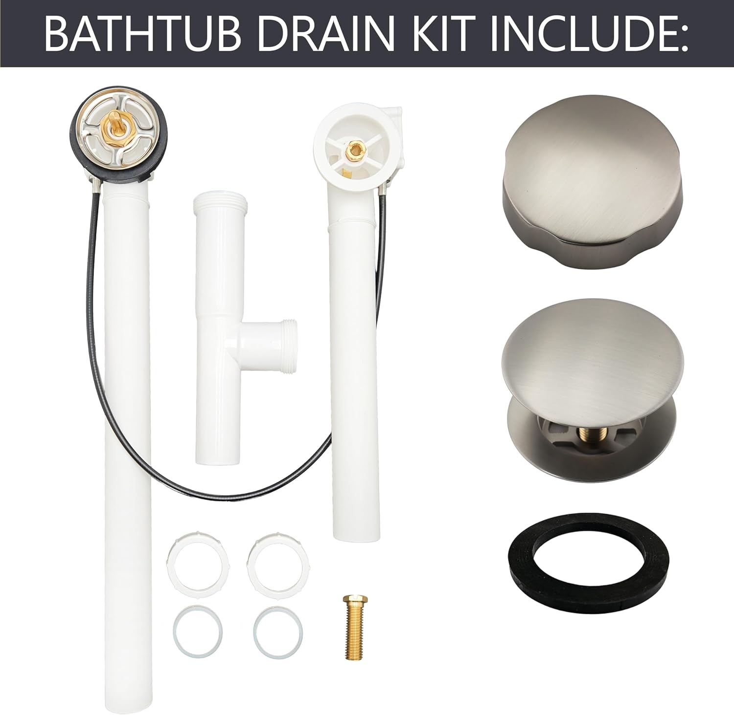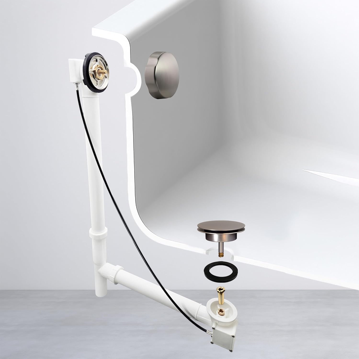 Product Description This Westbrass Cable Drive Bath Drain Trim Kit delivers dependable performance and smooth operation for standard bathtub installations. Designed with a 1 1/2 inch Schedule 40 PVC cable driven system, this complete trim kit includes a durable brass rotary overflow knob, a standard pop up stopper with integrated strainer plate, and poly tubular pipes and fittings for a reliable assembly. The 27 inch cable length is ideal for standard tub applications, providing responsive drain control through a simple rotation of the overflow cover. Turning the round overflow cover closes the drain, and rotating in the opposite direction opens it, offering precise and convenient water management. All glue type fittings are included, allowing secure solvent weld connections for long lasting performance. A low profile top elbow with handle mounting back plate ensures compatibility in tight installation spaces while maintaining structural stability. Built for both remodel and new construction projects, this cable driven trim kit combines ease of installation, durable materials, and professional grade functionality. Be sure to check out our other model styles and VISIT OUR WESTBRASS STOREFRONT for more Kitchen and Bath items to stylize your home with convenient functionality and beauty. From the Manufacturer Westbrass was founded in 1935 by two brothers, Jack and Aaron Kagan, to serve the needs of all plumbing wholesalers on the West Coast. The product lines at the time included items such as faucets, valves, malleable fittings, etc. After becoming the premier distributor of plumbing products, the company was bought in 1985 by Max Homami. Seeing a boom in the Home Improvement Industry, Mr. Homami had a vision to make Westbrass the leader in Kitchen & Bath Accessories. The company currently manufactures its own products made of the highest quality materials. In order to ensure the excellence in the industry, these products are made to pass the highly stringent requirements of NSF, IAPMO, ADA and many other regulations. The Los Angeles-based company now sells a wide range of Plumbing Specialty Products, Bath Waste & Overflows, as well as Decorative Kitchen & Bath Accessories worldwide. Westbrass holds several patented items including the Deep Soak Overflow designed for extra-deep soaking in most bathing-wells, the Closing Linear overflow and several other intellectual properties. The customer base includes kitchen & bath showrooms, plumbing wholesalers and supply houses, OEM and ODM companies, as well as several national home centers.