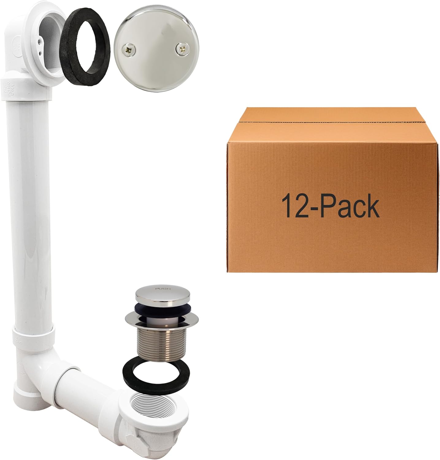 | Item Type Name | 1-1/2" x 12" Bath Waste & Overflow Assembly with Two-Hole Faceplate Cover and Tip-Toe Drain Plug - Sch. 40 PVC |