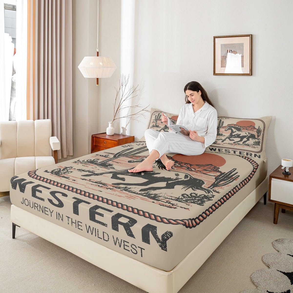 Size Information Twin size: 1 Fitted Sheet 39"Wx75"Lx16"H and 1 Pillowcase 20"Wx30"L. Full size: 1 Fitted Sheet 54"Wx75"Lx16"H and 2 Pillowcases 20"Wx30"L. Queen size: 1 Fitted Sheet 60"Wx80"Lx16"H and 2 Pillowcases 20"Wx30"L. Versatility We have many kinds of styles for you to choose. You can easily find a product that suits the style of your room. The item is not only suitable for your home, bedroom, guest room, living room, or rv, your families, friends, relatives, boyfriend, girlfriend. Modern Design The luxury aesthetic bedding set is made reactive printing and dyeing process. The pattern is clear, the color is bright, which will not fade after repeated washing. Personalized As a manufacturer of digital printed home textiles, we follow current trends and bring you the latest and stylish home textile products. The item will make the room decorated in exquisite taste.
