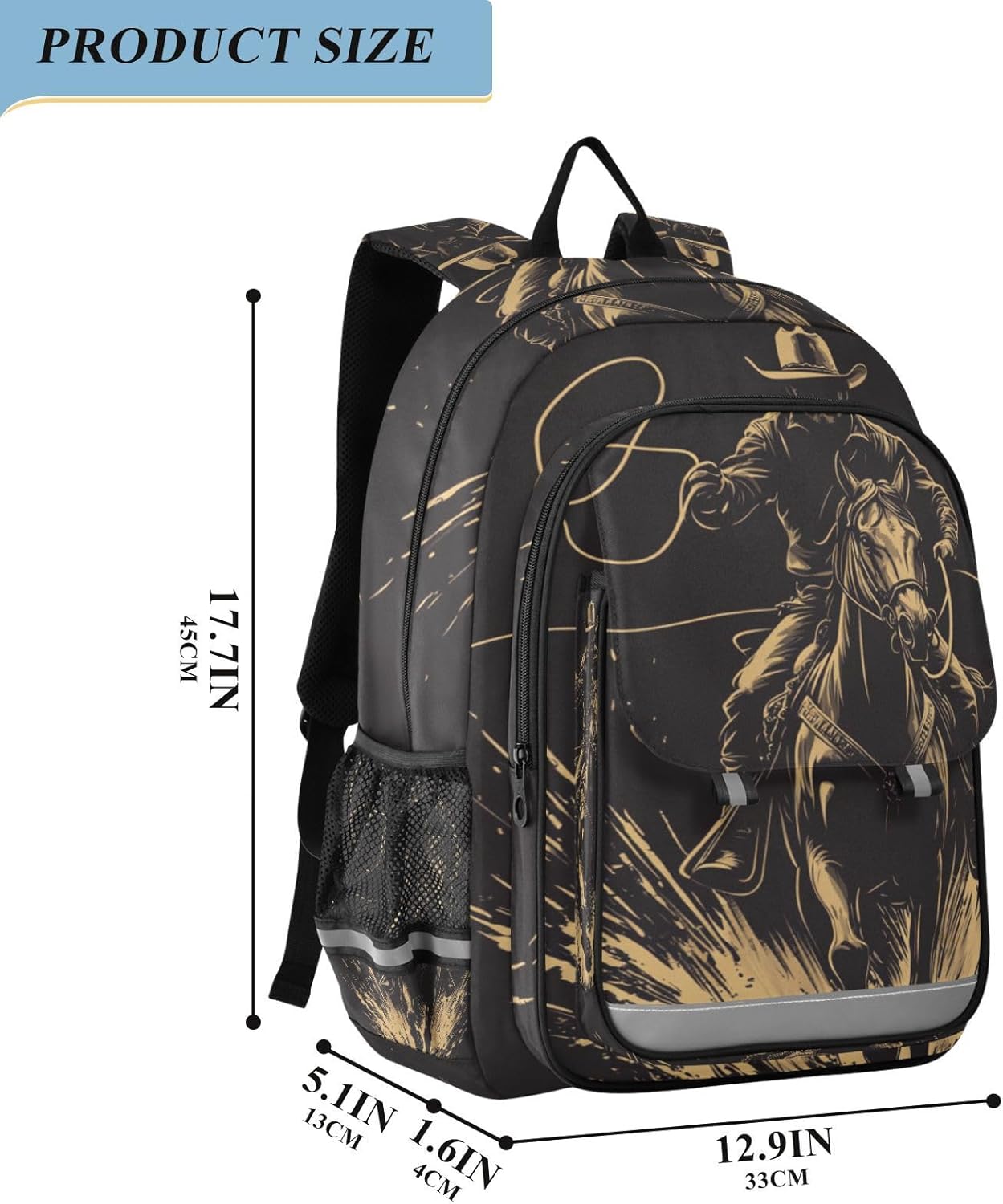 Make School Days Fun, Looking for a Funny backpack for Boys Girls! Product Information Material: High quality polyester, tear-resistant, scratch-resistant, easy to clean Dimensions: 12.9” x 6.7” x 17.7” /33 x 17 x 45 cm, capacity: 17L, recommended age 6-12 years Parents and Family Members Love it! Main compartment, front compartment, front insert pocket and 2 side mesh bags Main pocket can store notebooks, school supplies, binders, clothes, lunch bags, folders, headset, camera Front zipper pocket for quick access to pencil case, phone, wallet, purse, pen or snacks Front insert pocket: chargers, keys, facial tissues Side mesh pockets fit water bottles Breathable adjustable padded shoulder strap provide comfortable carry experience in daily life Interesting design: zebra, leopard, cartoon, dinosaurs, space patterns, fire truck tractor, truck, car, western cowboy, beetle, flowers, cats, dog, bats, snowflake, snowman Safety First: Reflective strips for Improve visibility at night Great value present for those who go to school, travel or work Warm Tips It is recommend to wash by hand, hang to dry This kids backpack combines style, practicality, designed for students outdoor sports personnel, school essentials, school days or weekend adventures