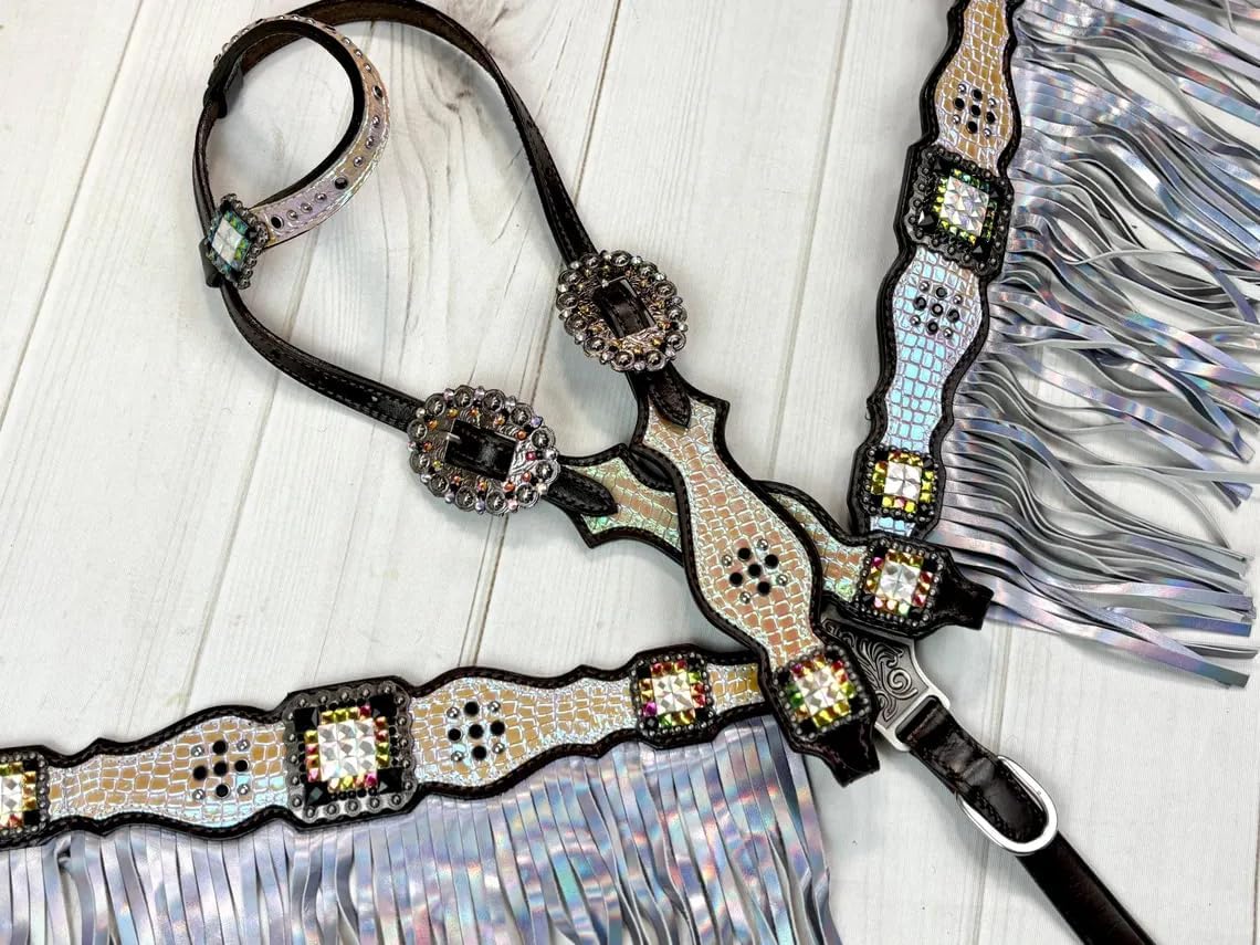 Offering a handcrafted matching set of Headstall and Breast Collar & Reins made with 100% Premium Leather, Adjustable buckle & SS Fitting. Beautiful Headstall Breastplate and Reins :-Our aim is to satisfy the customer by providing the right size and good quality leather saddle. Really make your horse stand out in this gorgeous angel wing tack set! This set features a beautifully hand crafted winged breast collar and headstall that will really help you fly! The set is a hand Tooled Tack Set. The set is intricately tooled and decorated to give it a true winged effect. This set features stainless steel hardware with Chicago screw bits and rein attachments. Tack Set Specifications: Color: As Per Picture. 100% Premium Leather. Hand Carved Tooling. Stainless Steel Hardware. Tack Set Measurements: Full & Cob. Weight: Approx. 4 to 5 lbs.