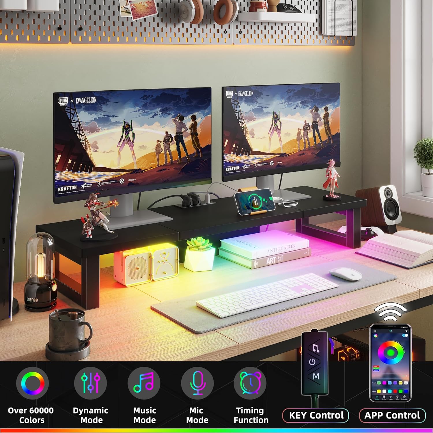 Dual Monitor Stand Riser with Power Outlet, Computer Monitor Stand Riser for 1~2 Monitors, Multi-Purpose Desktop Organizer Riser for Computer,Laptop,Printer,TV