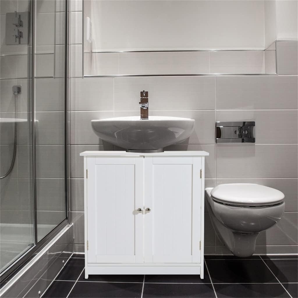 - STYLE AND STORAGE: Base sink storage cabinets combine contemporary style with ample storage space, perfect for your bathroom. - SPACE SAVING: The back of the cabinet features an design, so you can assemble the vanity under or next to the pedestal sink. Budget Friendly: Made of engineered wood, similar to hardwood, but at a more cost effective price. - Adjustable shelves: Features 2 adjustable shelves to keep bathroom ls or cleaning products in a convenient place. - Stylish Hardware: All included hardware features a sleek stainless steel finish that complements bathroom environments. Specifications. - White color - Material: MDF engineered wood stainless steel metal - Overall dimensions: 23.5" L x 11.75" W x 23.5" H - Recess size:: 8.75 "W x 7.5 "D - Cabinet size:: 21.25 "W x 10.25 "D - 2 shelves with 4 adjustable levels: 7.5' 12.5' - Recess size: 8.8'W x 7.5'L Net weight: 17 lbs. Package includes. 1 x Bathroom Cabinet 1 x User Manual(other presentation items are not included) matters need attention: 1. Please allow a 2-3% error due to manual measurement, and make sure you don't mind before you bid. 2. Color may vary by display, please refer to the actual product.