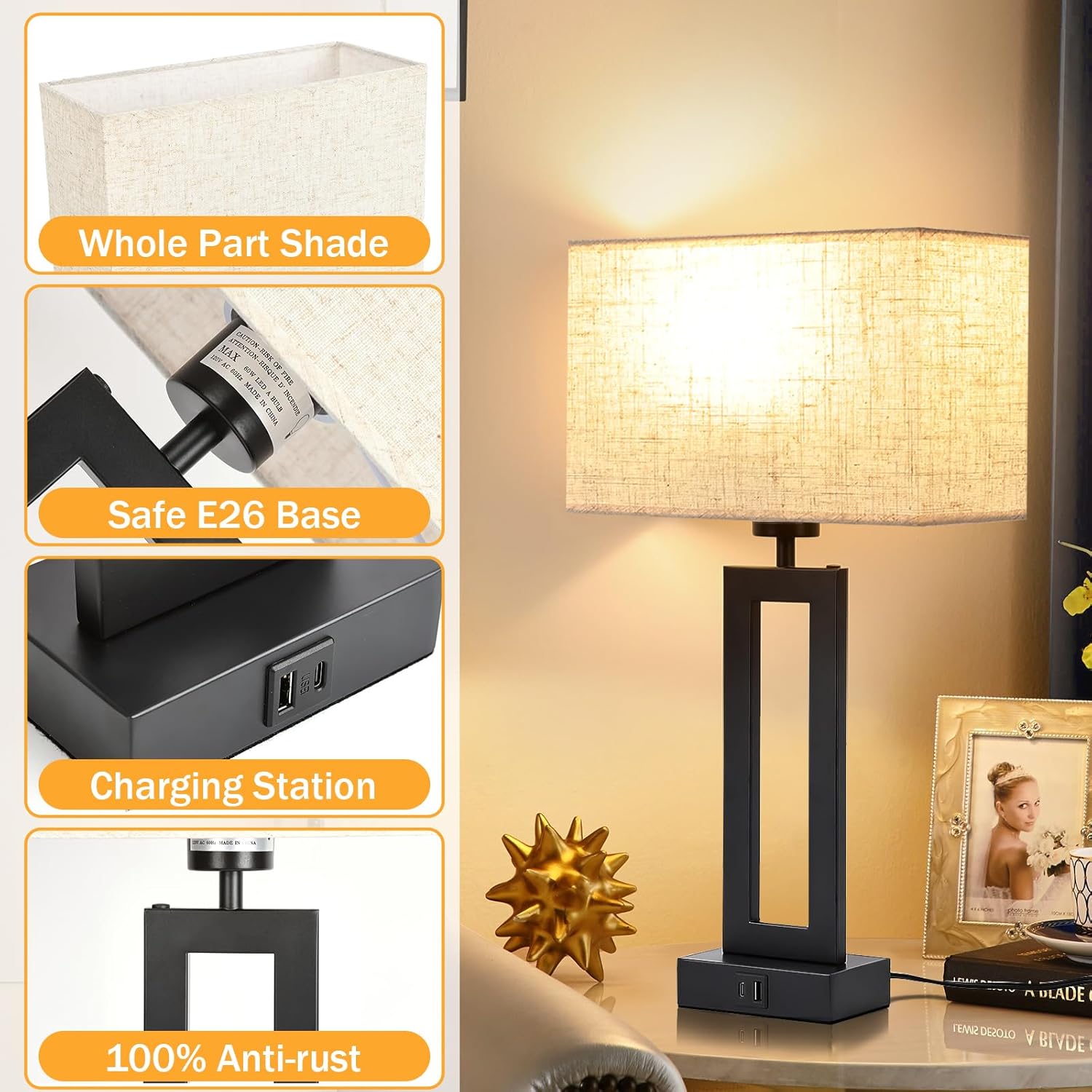 | Special Feature | 3-Way Dimmable/Touch Control/USB Ports/Anti-rust/LED Light/Classic Design |