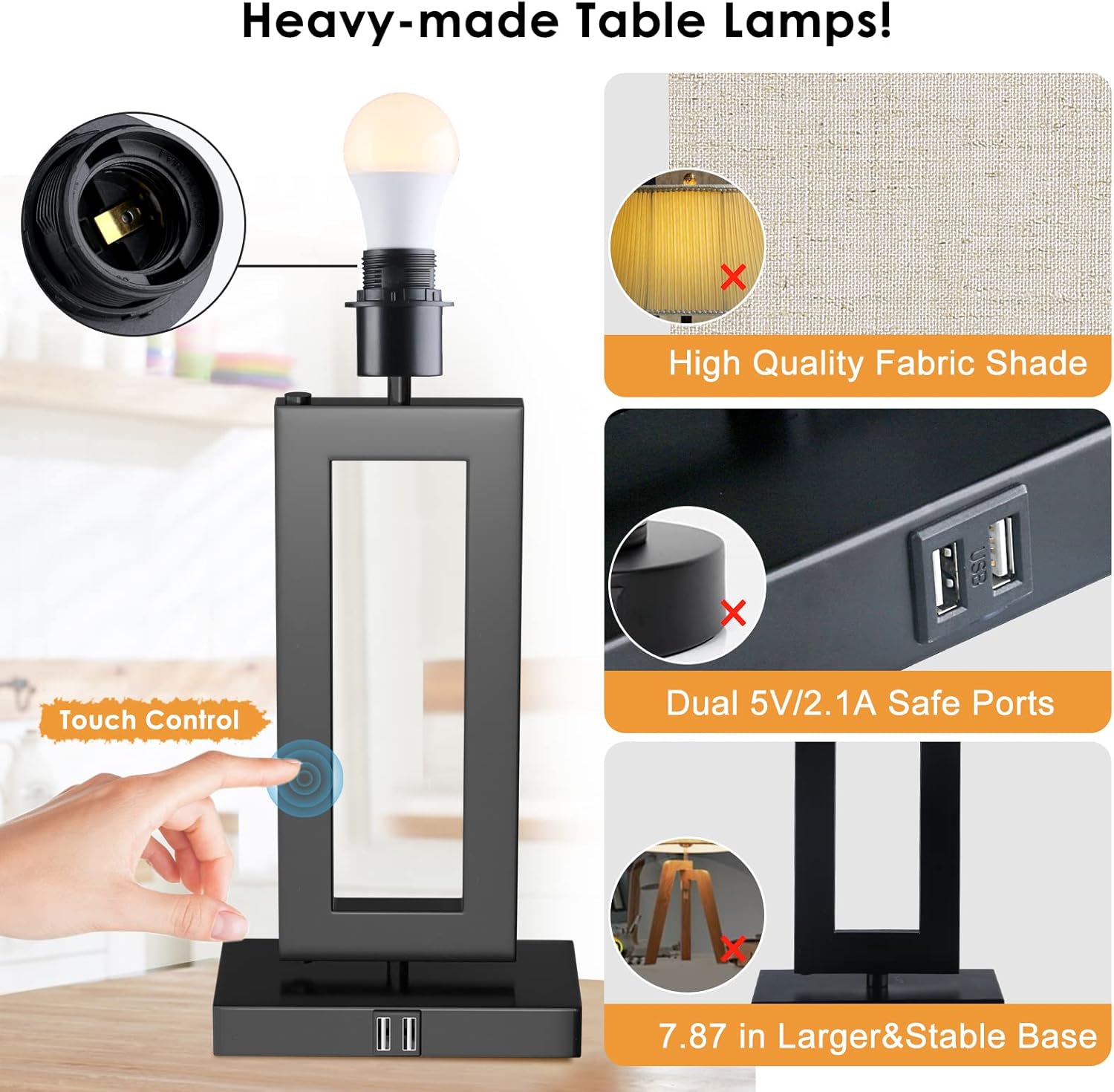 | Special Features | 3-Way Dimmable/Touch Control/USB Ports/Anti-rust/LED Light/Classic Design |