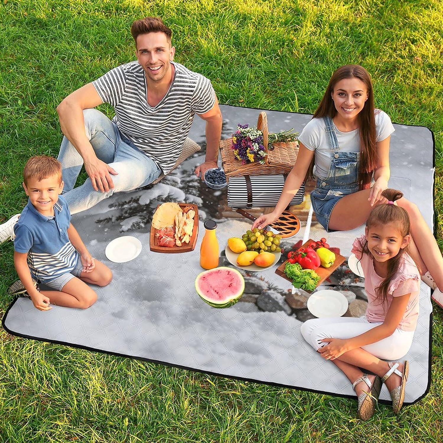 The picnic blanket ,we've only used the highest quality materials, so every picnic is an experience .The underside lining is very sturdy and therefore suitable for every surface. No more worrying about dirty or wet bottoms when you are sitting on damp grass. The White Christmas blanket protects you from water, dust and dirt.A large capacity bag and a picnic blanket, 2in1. It has a large capacity and one bag can hold everything you need for going out. You choose the place you want to lie down, and this bag can be turned into a comfortable picnic blanket in seconds also it can fold into tote bag, which is waterproof, sand-proof and wear-resistant.Therefor,you can take it to nearby parks, campuses, beaches or lawn, anywhere you want to lie down.