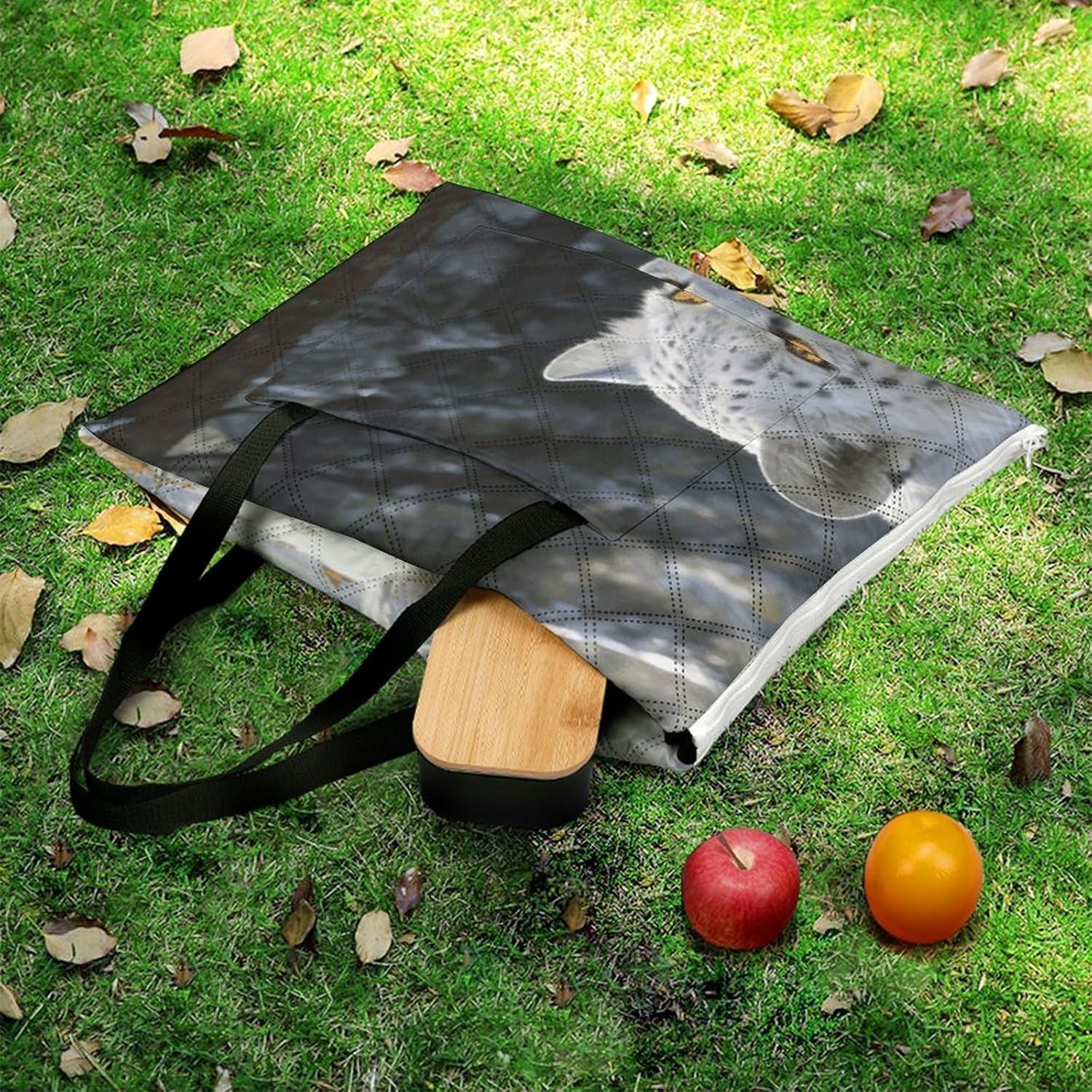 The picnic blanket ,we've only used the highest quality materials, so every picnic is an experience .The underside lining is very sturdy and therefore suitable for every surface. No more worrying about dirty or wet bottoms when you are sitting on damp grass. The White Leopard blanket protects you from water, dust and dirt.A large capacity bag and a picnic blanket, 2in1. It has a large capacity and one bag can hold everything you need for going out. You choose the place you want to lie down, and this bag can be turned into a comfortable picnic blanket in seconds also it can fold into tote bag, which is waterproof, sand-proof and wear-resistant.Therefor,you can take it to nearby parks, campuses, beaches or lawn, anywhere you want to lie down.