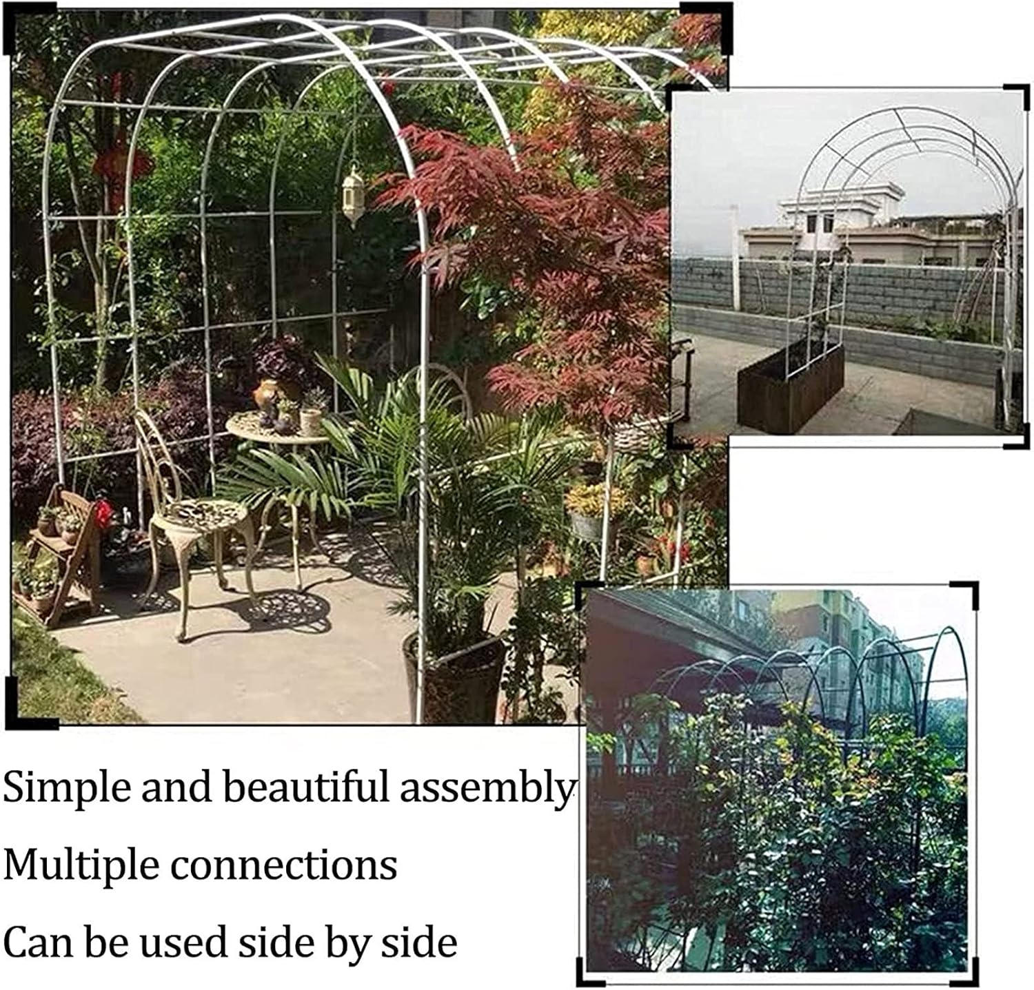 Outdoor Support Stand:Transform your outdoor space with our elegant Garden Arch, designed to enhance the beauty of your patio and garden. This stylish arch serves as a stunning entryway, adorned with climbing plants, creating an inviting atmosphere that’s perfect for any occasion. Crafted from durable iron, our Garden Arch is not just a decorative element; it’s a versatile addition to your outdoor decor. Whether you’re planning a wedding, birthday party, or a cozy gathering, this arch can be the focal point of your event. Its multipurpose design allows it to function as a garden entrance, a climbing frame for your favorite plants, or even a decorative flower stand, making it suitable for various indoor and outdoor settings. Available in classic Black and White, our Garden Arch comes in multiple sizes (ranging from 1.2x2.2m to 3.5x2.2m) to fit your specific space needs. The 19mm pipe diameter ensures stability and strength, allowing you to create the perfect backdrop for your cherished moments. This garden accessory is ideal for a variety of locations, including living rooms, villa entrances, balconies, gardens, sports fields, and vegetable gardens. To enhance stability, especially on cement surfaces, consider placing potted plants at the base. Please note that slight color variations may occur due to lighting differences, and allow for minor measurement discrepancies. We are committed to your satisfaction, so if you have any questions, feel free to reach out to us—we respond within 24 hours. your outdoor experience with our Garden Arch and create lasting memories in your beautiful garden setting.
