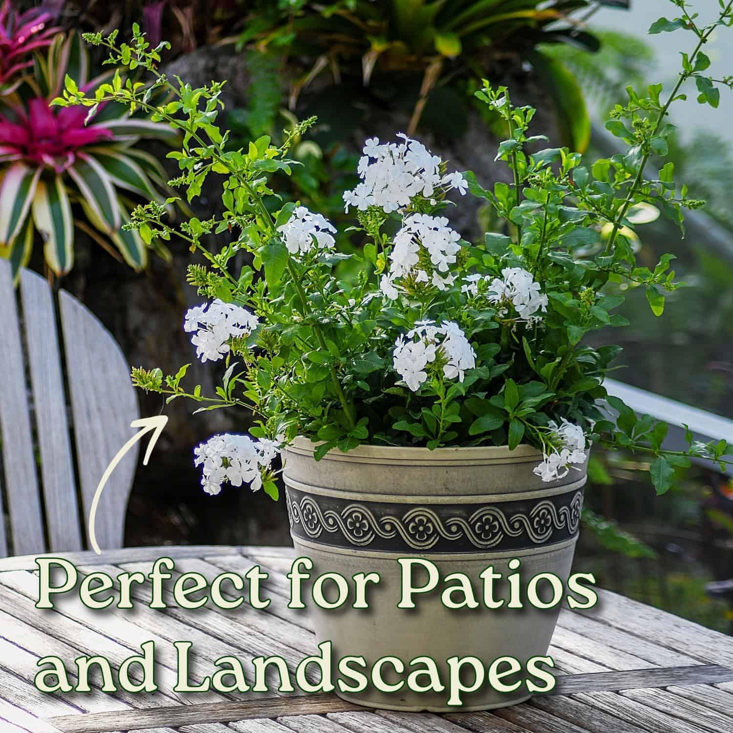 Bring timeless beauty to your landscape with the White Plumbago (Plumbago auriculata), a stunning flowering shrub that produces clusters of crisp white blooms year-round in warm climates. This versatile plant is perfect for garden borders, hedges, trellises, or container planting, offering a soft, elegant aesthetic that complements any outdoor space. Thrives in Full Sun & Warm Climates White Plumbago flourishes in full sun, although it can tolerate partial shade. It is well-suited for USDA Zones 9-11, making it a low-maintenance perennial for tropical and subtropical gardens. Its drought-tolerant nature makes it an excellent choice for landscapes requiring minimal upkeep. Deer-Resistant & Pollinator-Friendly This deer-resistant shrub naturally deters browsing animals while attracting butterflies, bees, and hummingbirds, enhancing the biodiversity of your garden. Grown & Shipped with Care Your White Plumbago arrives in a 3-gallon nursery pot, fresh from our family-owned nursery. We prioritize sustainable growing practices and careful packaging to ensure your plant arrives healthy and ready to thrive.