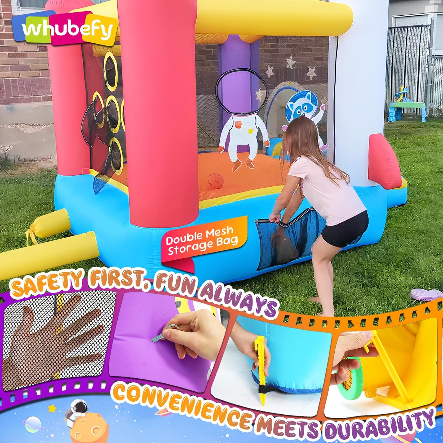 | Included Components | 1 x Planet&Rockets Inflatable Bounce House with 370W UL-certified Air Blower, 1 x Storage Bag 15.75*15.75*16.54inch, 14 x Repair Patches, 3 x Inflatble Ball with Pump, 8 x Bouncer Stakes, 4 x Blower Stakes |