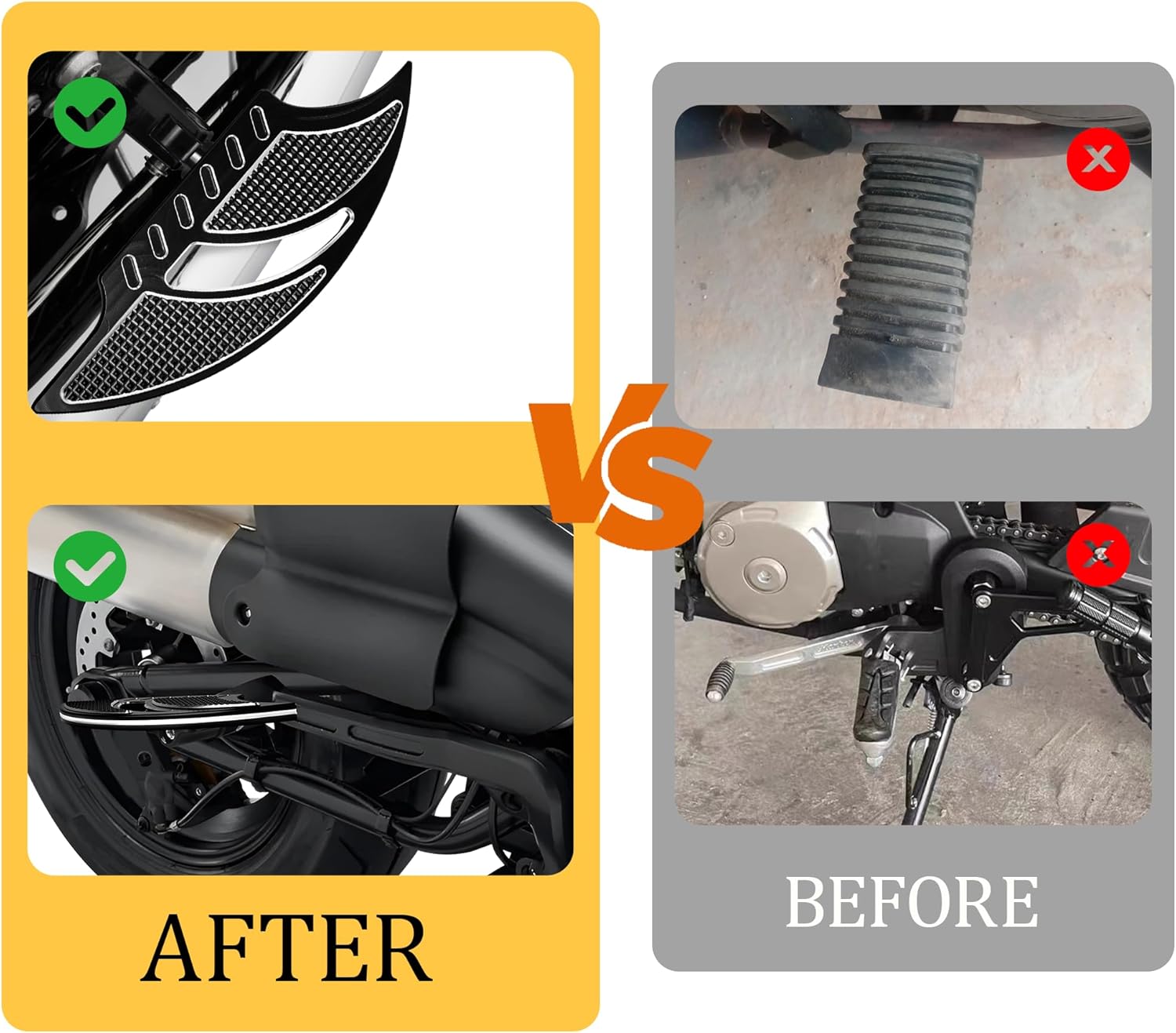 Sresk Wide Motorcycle Driver Floorboards | Front Rider Foot Pegs Compatible with Harley Touring 1986 - 2025 (Electra Glide, Street Glide, Road Glide, Softail, Dyna),Chrome