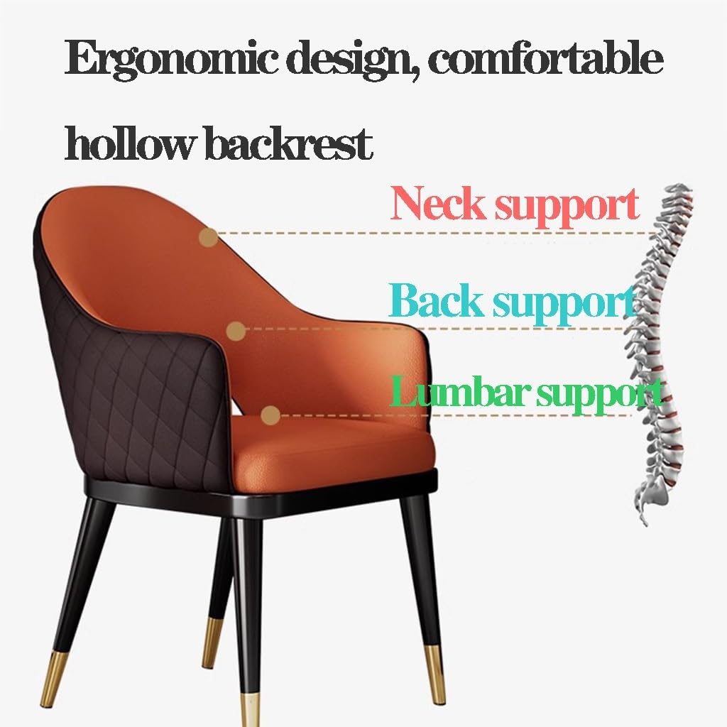 This dining chair is aim to let you have a comfortable sitting experience. The backrest has slight elasticity, so you won't feel hard when leaning. Soft and breathable leathaire covered cushion makes it not easy to sweat as you sitting for a long time.【Product specification】:--Product material: PU leather + metal+wood --Maximum load:150kg/330 lbs--Package Contents:dining chair*1--Scope of application: Dining Room, Living Room, Bedroom, Kitchen, Conference Hall, Office, Reception Hall, Cafe, Bar--Application: Dining Chair/side chair/Guest Chair/Negotiation Chair/Makeup chair【Tips】:★ We only sell dining chairs, other items are props.★ All data is measured by hand with a slight error.★ Due to physical factors such as light, camera color and lighting, there may be subtle color differences.