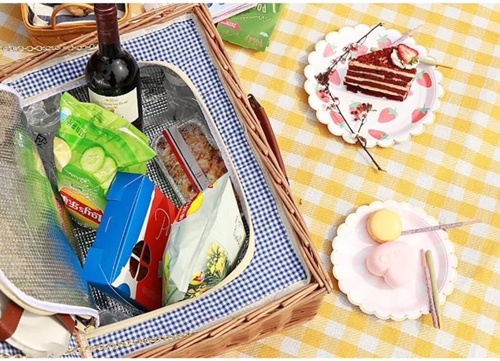 Complete Picnic Set: This willow picnic basket set includes everything you need for a perfect outdoor dining experience, with a large cooler compartment, tableware, and accessories for 4 or 2 persons.