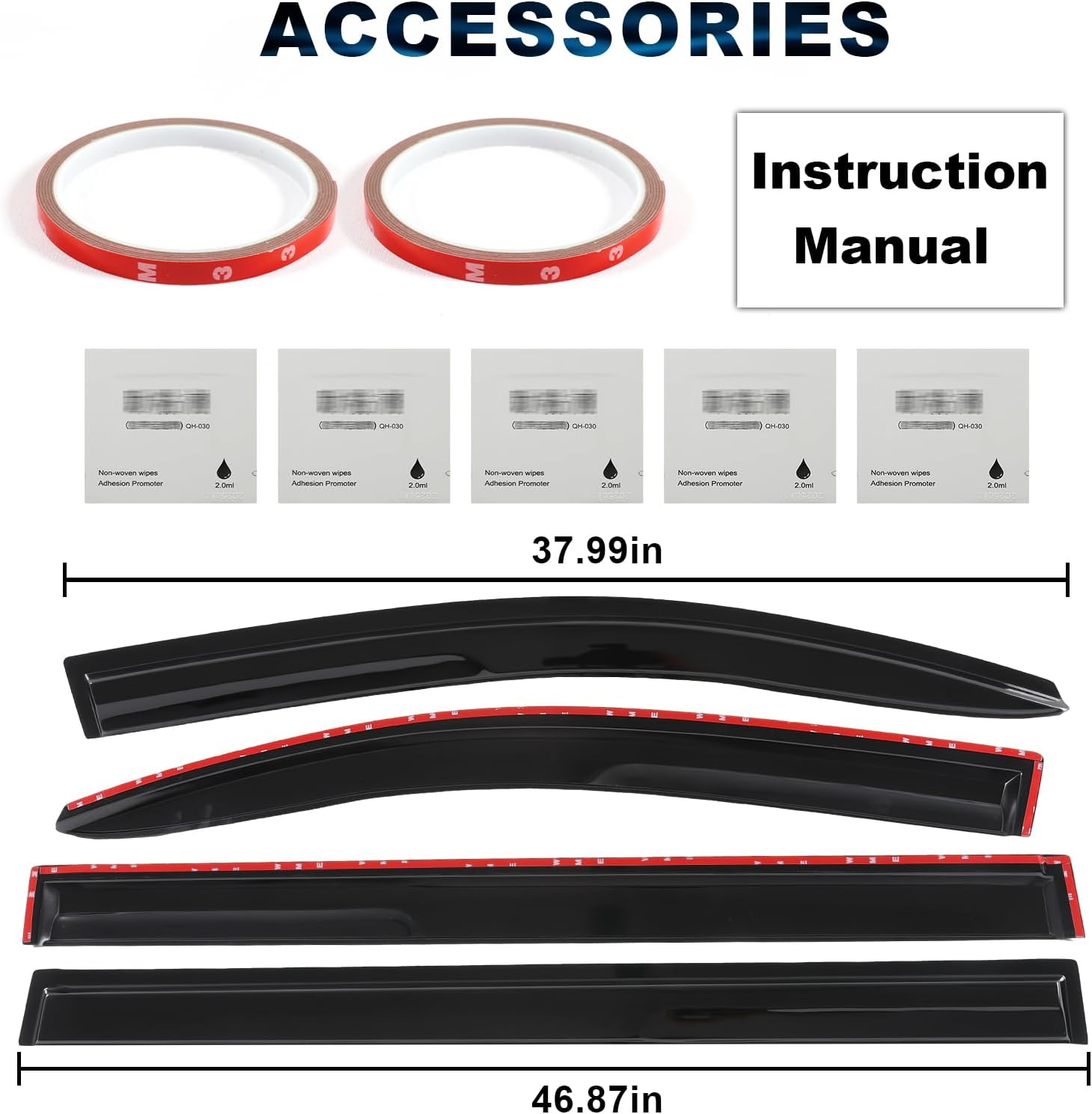 | Included Components | Adhesion promoter x5, Double-sided tape x2, Rain Guard x4 |