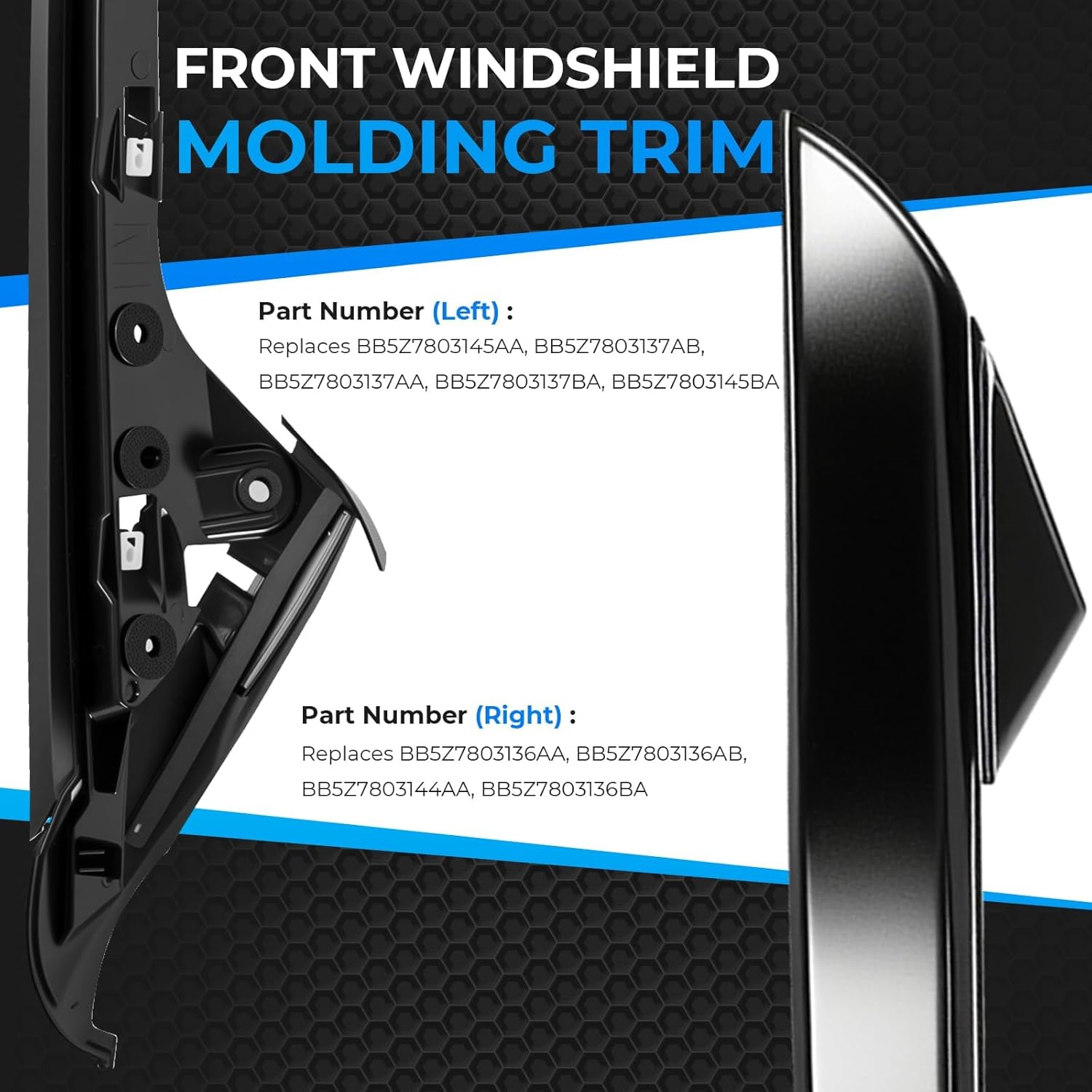 | Included Components | 1*Left Passenger Side Windshield Trim Molding set, 1*Right Passenger Side Windshield Trim Molding set |