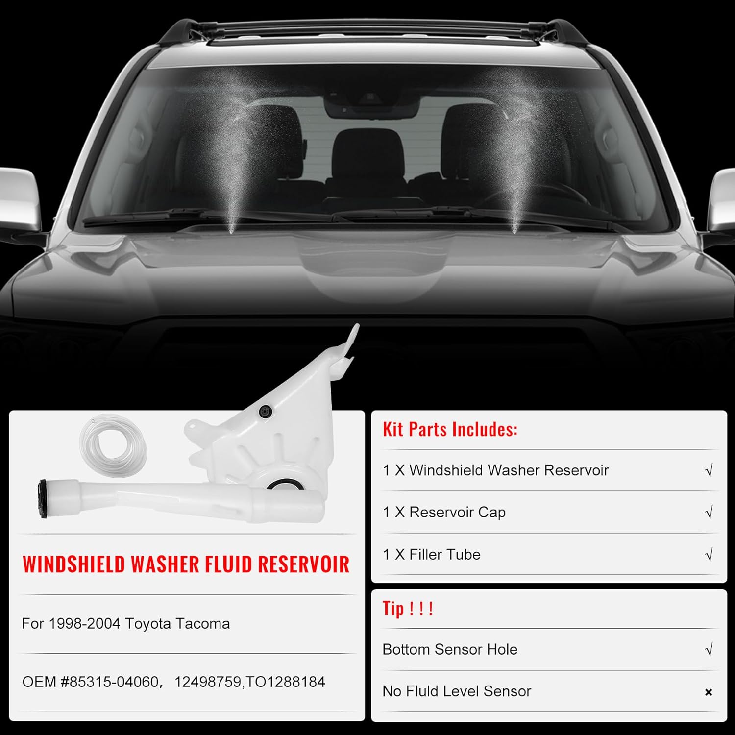 | Included Components | Windshield Washer Reservoir(with Bottom Sensor Hole), Filler Neck, Cap, Tube |