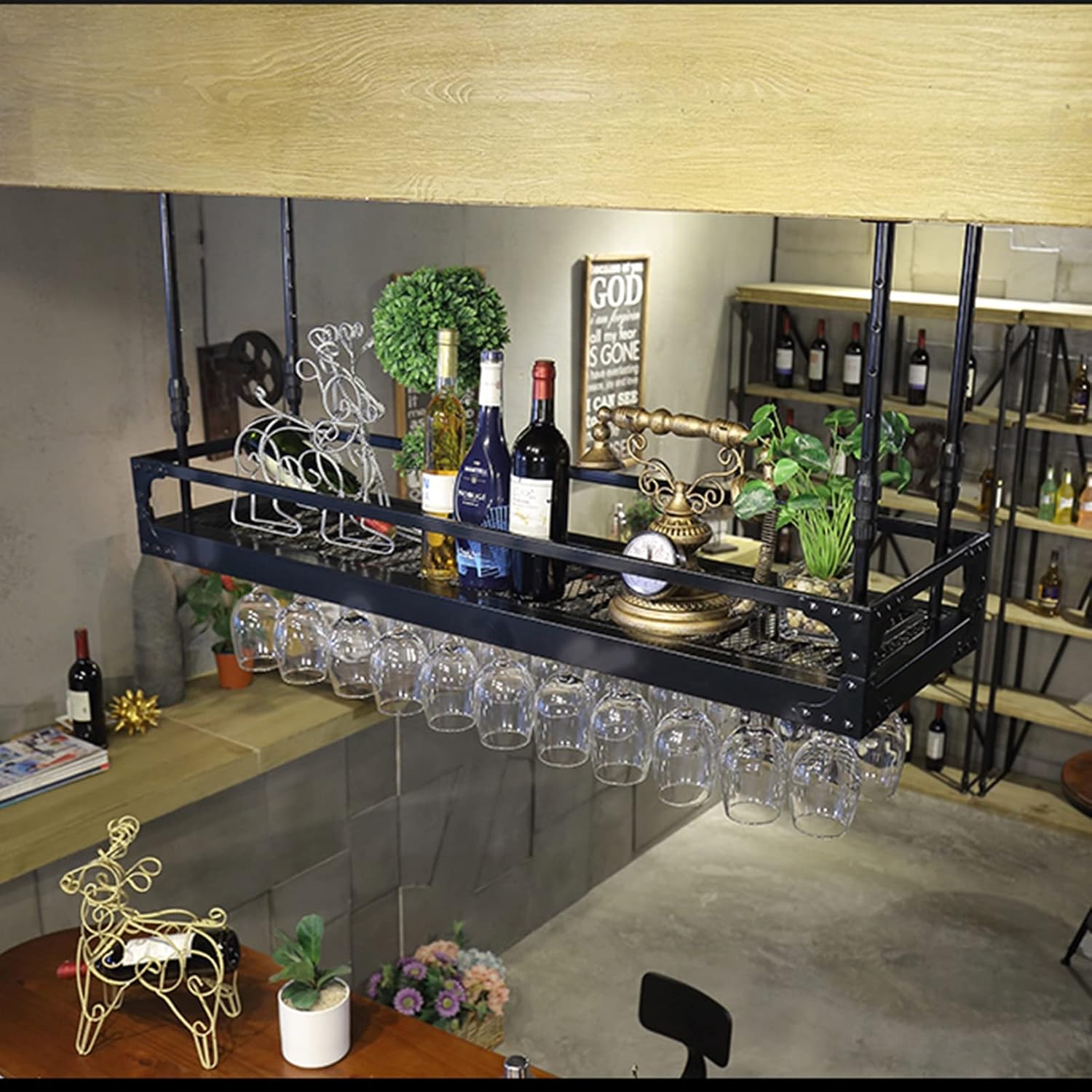 ☛Modern Creative Iron Ceiling Goblet Holder, Enjoy a Comfortable and Simple Life. Unique Artistic Appearance, Handmade, Smooth and Easy to Clean, Durable, Easy to Install, Beautiful and Generous. It is Suitable for Various Scenes, Wineries, Daily Life, Bars, Commerce and Entertainment.☛The Number of Cup Holders at the Bottom Will Be Adjusted According to the Length of the Shelf. If You Need Consultation or Customization, You Can Contact Us by Email.