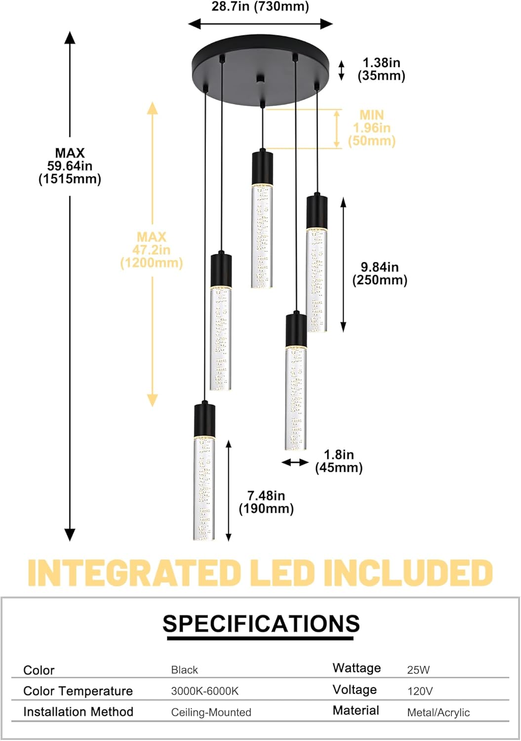 | Included Components | Bubble Acrylic Column*5, Instruction Manual, Integrated LED Bulb Included, Mounting Hardware, Pre-wired Lamp Body |