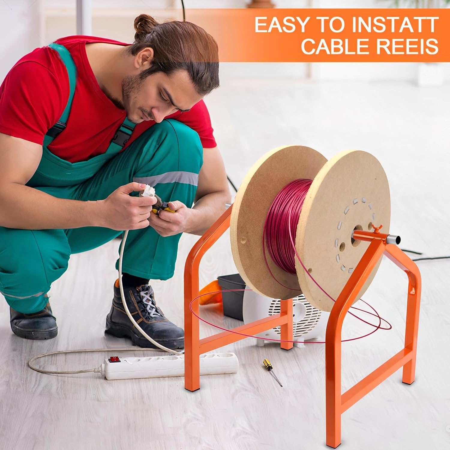 Material: metal Color:orange Product Dimensions: 16.54 x 4.49 x 3.19 inches Packing weight: 4.63 lb Package Dimensions:19.29 x 15.75 x 4.33 inches Cable caddy wire spool reel holder is a good choice for you to manage wires efficiently. Wire spool caddy can provide a neat and organized wire storage solution. The plastic mat protects your floor while providing a stable working platform. The all metal construction and powder coating process give the product good durability, and its easy disassembly makes transportation and storage a breeze. Wire spool rack can adapt to many sizes of spools and can carry a maximum weight of 220 pounds. You can quickly assemble it without any tools and enjoy the convenience of immediate use. This is a wire management tool that combines practicality, durability and portability.