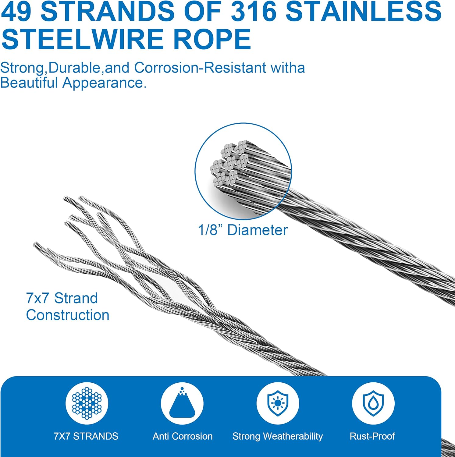 Wire Trellis for Climbing Plants Outdoor, 20-Set Wall Wire Trellis Kit with 1/8in x 98ft Stainless Steel Cable & Cutter, T316 Espalier System for Fence and Garden DIY Projects