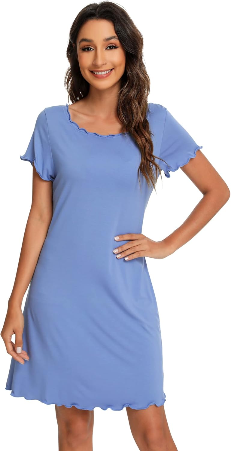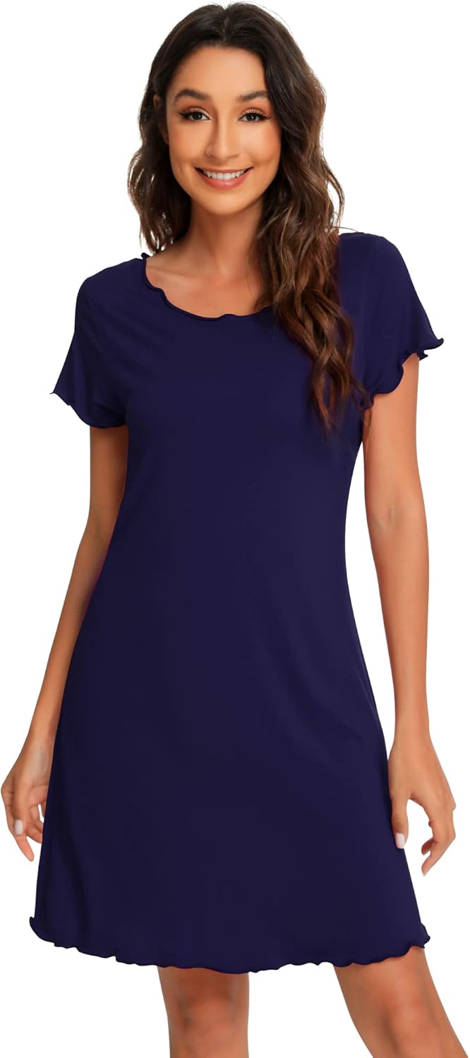 Enjoy everyday comfort with the WiWi nightgown for women, designed as a soft and breathable sleep dress and sleepshirt for relaxing nights and casual home wear. Made from smooth bamboo viscose fabric with stretch, this lightweight nightgown feels gentle against the skin while allowing natural movement and a comfortable drape. The classic V-neck sleep shirt design creates a relaxed and flattering fit that suits different body shapes. The loose silhouette and soft knit fabric make this women's sleepwear comfortable for sleeping, lounging, or wearing as a casual house dress or lounge dress at home. This versatile sleep dress works perfectly as nightwear, lounge sleepwear, or pajama dress, offering lightweight comfort and effortless style. It is also a thoughtful gift choice for wives, moms, girlfriends, or friends who appreciate soft breathable sleepwear and comfortable lounge clothing.