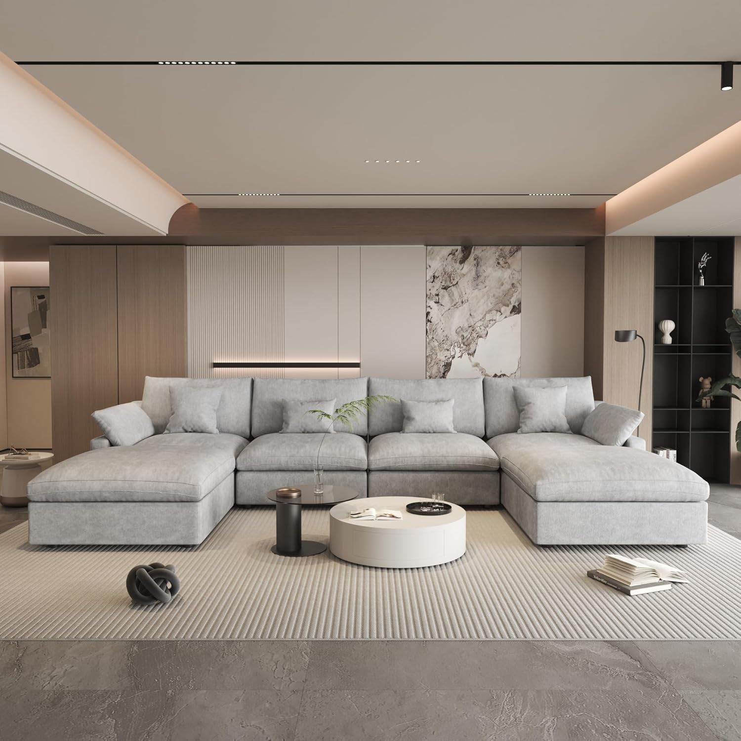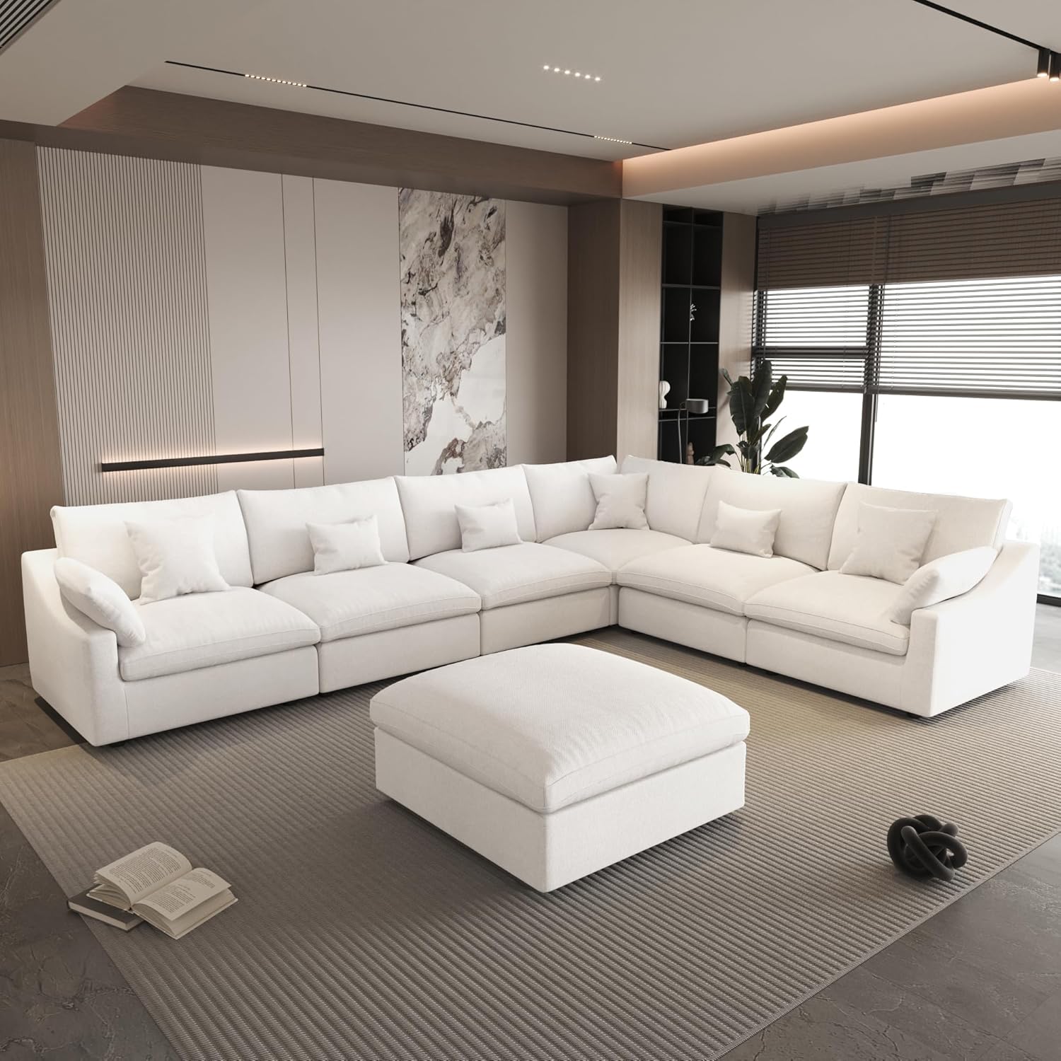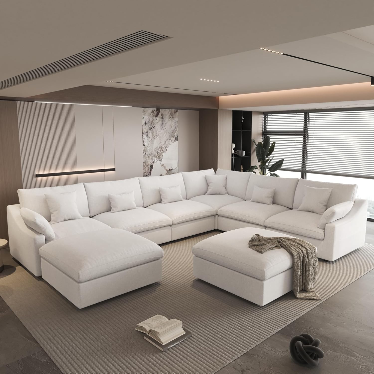 Modular Sectional Sofa with Thick Cushion, Minimalist Sofa Couch,Convertible Couch Deep Seat Couches for Modern Living Room Sofa Sets for Office HouseThe Skycloud sofa is designed to provide "cloud-like comfort." Its filling combines sponge, cotton, and down in the perfect ratio. Thanks to this filling, the Skycloud sofa is soft yet resilient. In addition, the Skycloud sofa is highly modular: you can freely combine the seats, and arrange or remove the arm cushions. Besides, you can choose from three modules: corner, armless, and ottoman. These features offer endless possibilities for arrangement.1. Washable Performance Fabric2. Open Your Mind3. Relex Your BodySpecifications:Size: 82.68"L x 39.37"W x 29.53"HWeight:500lbsWeight Capacity: 500 lbs / seatSeating Capacity: 3Style: Modern & ContemporaryUpholstery Material: Hemp FabricFill Material: Sponge,FabricCover Washable: YesAssembly Required: Yes