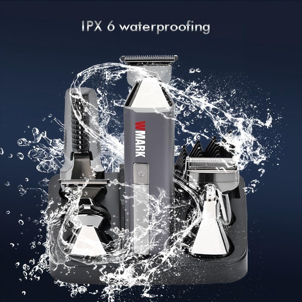 WMARK Elite Men's 6-in-1 barber trimmer set, stainless steel blade, 1200mAH lithium battery, 2 hours full charge for 200 minutes use,With 6 different function heads:hair clipper,hair trimmer,shaver,nose/ear hair trimmer,body trimmer,detail trimmer.