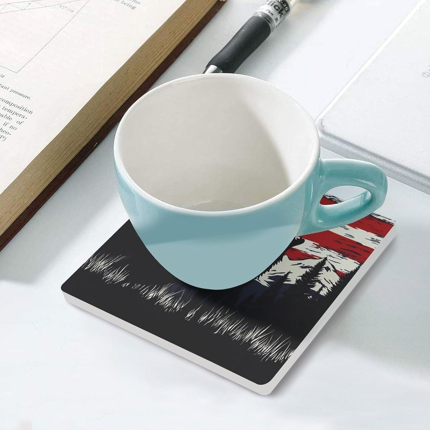 Cute Printed Absorbent Ceramic Coaster for Drinks Funny Coasters with Cork Base Suitable for Kinds of Mugs, Cups, Prevent Tabletop Wear And Scratches, and is Easy to Clean