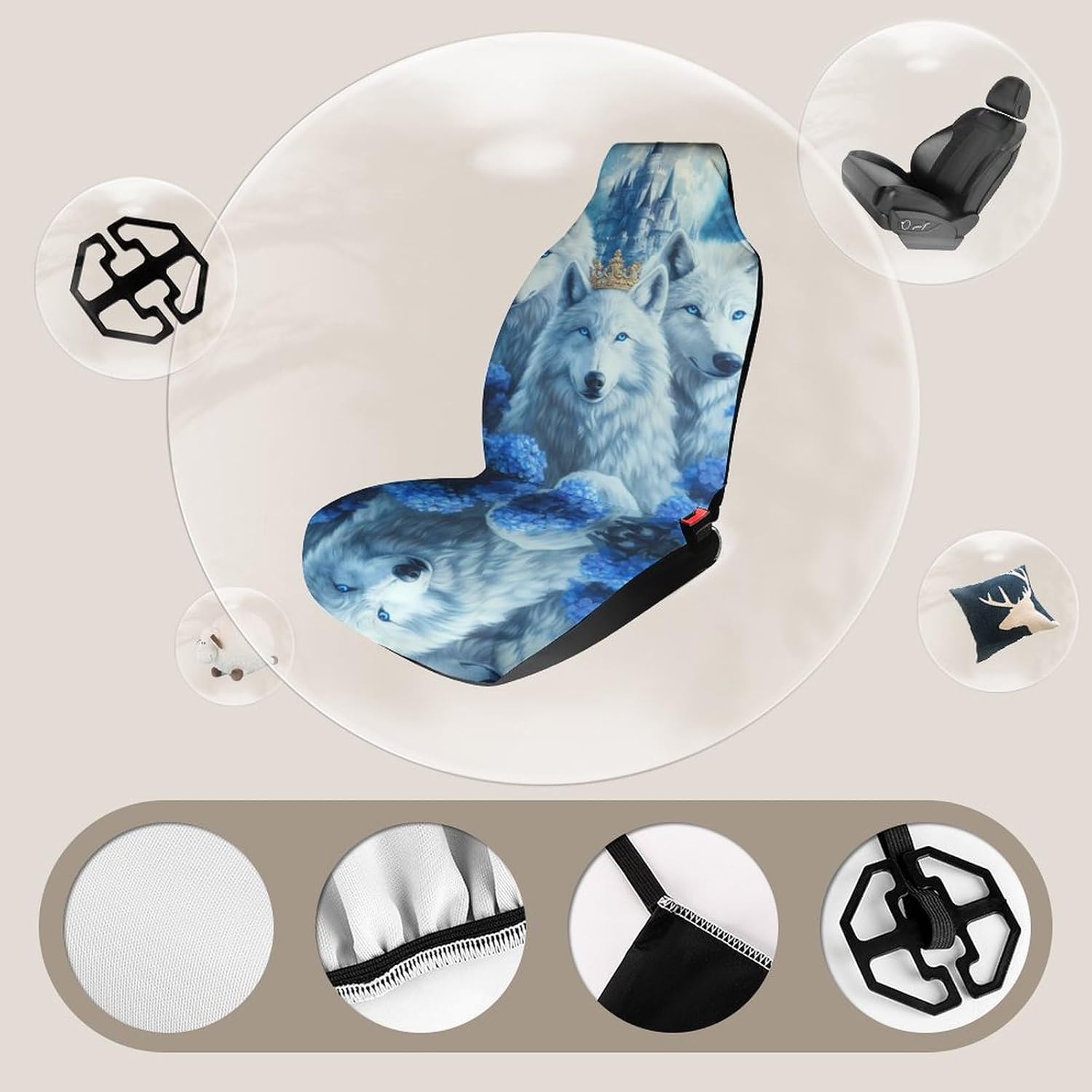 Wolf King Flower Car Seat Covers Universal Car Front Seats Protector Auto Interior Accessories 2PCS