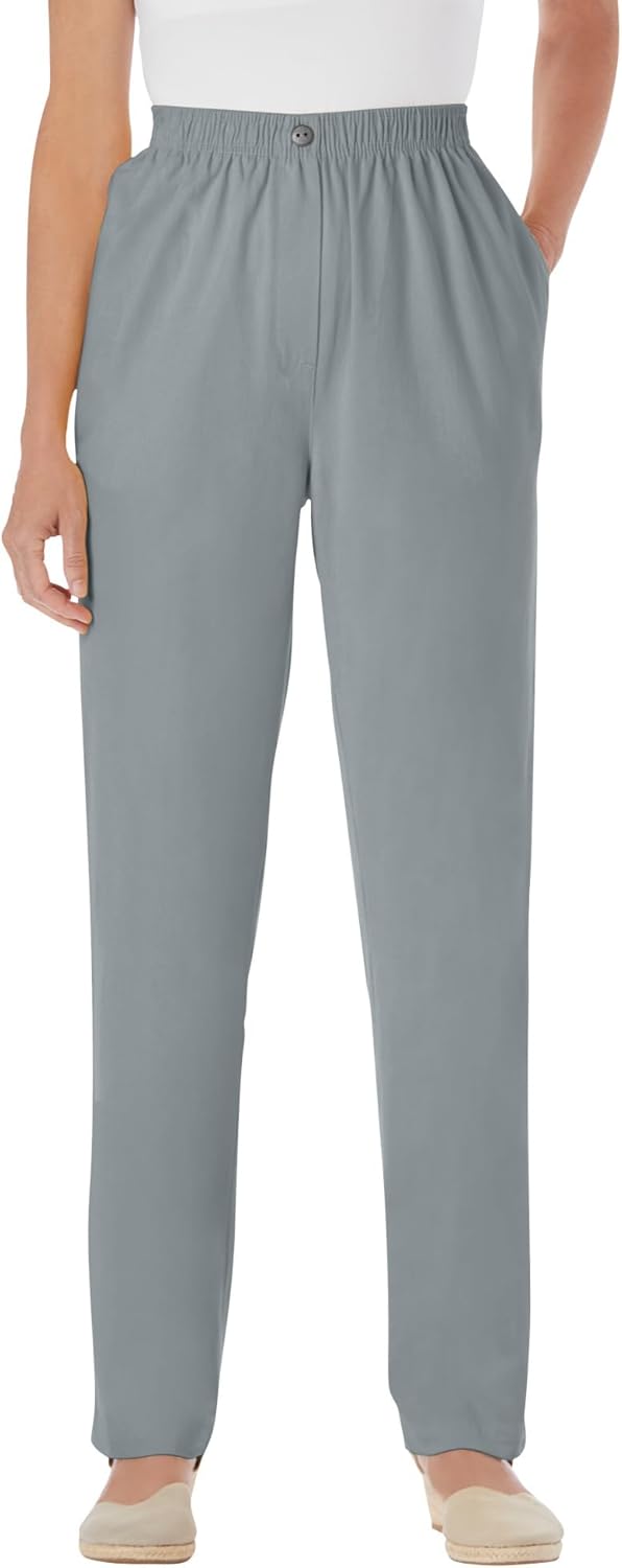 Woman Within Women’s Plus Size 7-Day Straight-Leg Denim Jeans are designed for the fit you’ve been looking for—easy, secure, and made to move with you. Crafted with soft denim, they hold their shape while delivering all-day comfort. The pull-on design with a full elastic waistband creates a smooth, gap-free fit (no digging, no gaping), while the faux fly and functional pockets keep the classic jean look you love. Available in average, petite, and tall lengths so you get a truly customized feel. FIT & SIZING Straight leg elongates your leg br> Relaxed Fit br> High rise, sits above the waist br> Average 30" inseam, Petite 28" inseam, Tall 34” inseam FEATURES & BENEFITS Breathable cotton denim with a soft feel against the skin br> Full elastic waistband with a faux fly and button for a smooth, gap-free fit br> Two side seam pockets for everyday function br> Multiple silhouettes—straight-leg, relaxed, tapered, and more—to suit your style br> Average, petite, and tall lengths for a truly just-right fit FABRIC & CARE 100% cotton br> Machine Washable br> Tumble Dry br> Imported WHY YOU’LL LOVE THE 7-DAY DENIM COLLECTIONEach one of our 7-Day Denim Bottoms is crafted from soft, flexible denim with comfortable, adjustable waistbands for a smooth, gap-free fit you can count on. Built for everyday wear, they deliver the comfort you want with the classic denim style you love—easy enough to reach for all seven days of the week. With multiple wash options and multiple flattering silhouettes—straight-leg, bootcut, capri, and more—you can truly wear them Monday through Sunday. For over 100 years, we've designed our clothing with one promise: the perfect fit, lasti